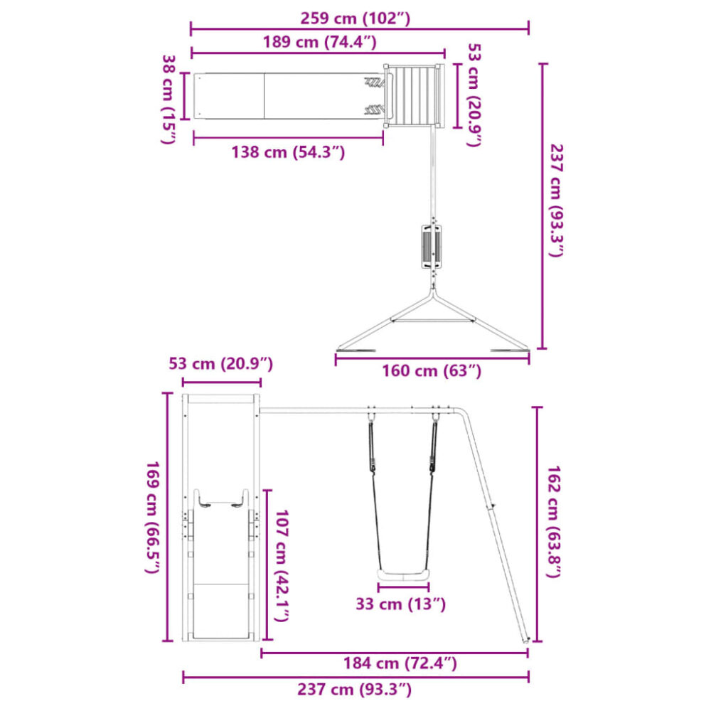 Quer dar às suas crianças a liberdade de poderem brincar em casa? Este conjunto de brincar para exterior em madeira transforma o seu quintal num parque infantil para aventuras imaginativas! Madeira de douglas maciça: esta estrutura de escalar para jardim é feita em madeira de douglas maciça. A madeira de douglas maciça é uma madeira altamente durável que se adapta bem em ambientes exteriores. A madeira de douglas é ainda forte e requer pouca manutenção, mesmo durante a ação das intempéries.Estrutura robusta e estável: a madeira da estrutura de brincar para jardim assegura robustez e estabilidade.Centros multi-atividades: a estrutura de escalar inclui uma plataforma com 90 cm de altura e destaca-se pelo seu conjunto individual de baloiço, escorrega ondulado, bem como pela caixa de areia. Os seus pequenitos também podem convidar os seus amigos para se juntarem à diversão.Design bem pensado: os corrimões de madeira circundantes foram concebidos para assegurarem a segurança das crianças durante as suas brincadeiras felizes.Diversão sem fim: esta casa de brincar para exterior em madeira proporciona imensa diversão e é a forma perfeita das suas crianças e dos seus amigos se divertirem, terem mais tempo interativo e criarem memórias para eles e para si! Atenção:Apenas para utilização domésticaUtilização ao ar livreNão é adequada para crianças com menos de 3 anos de idadeIdade recomendada do utilizador: 3-8 anosPeso máximo por utilizador: 45 kg Nota:O produto deve ser ancorado para reduzir o perigo de queda. As âncoras não estão incluídas. Útil saber:De forma a tornar a montagem o mais fácil possível, cada produto é entregue com um manual.