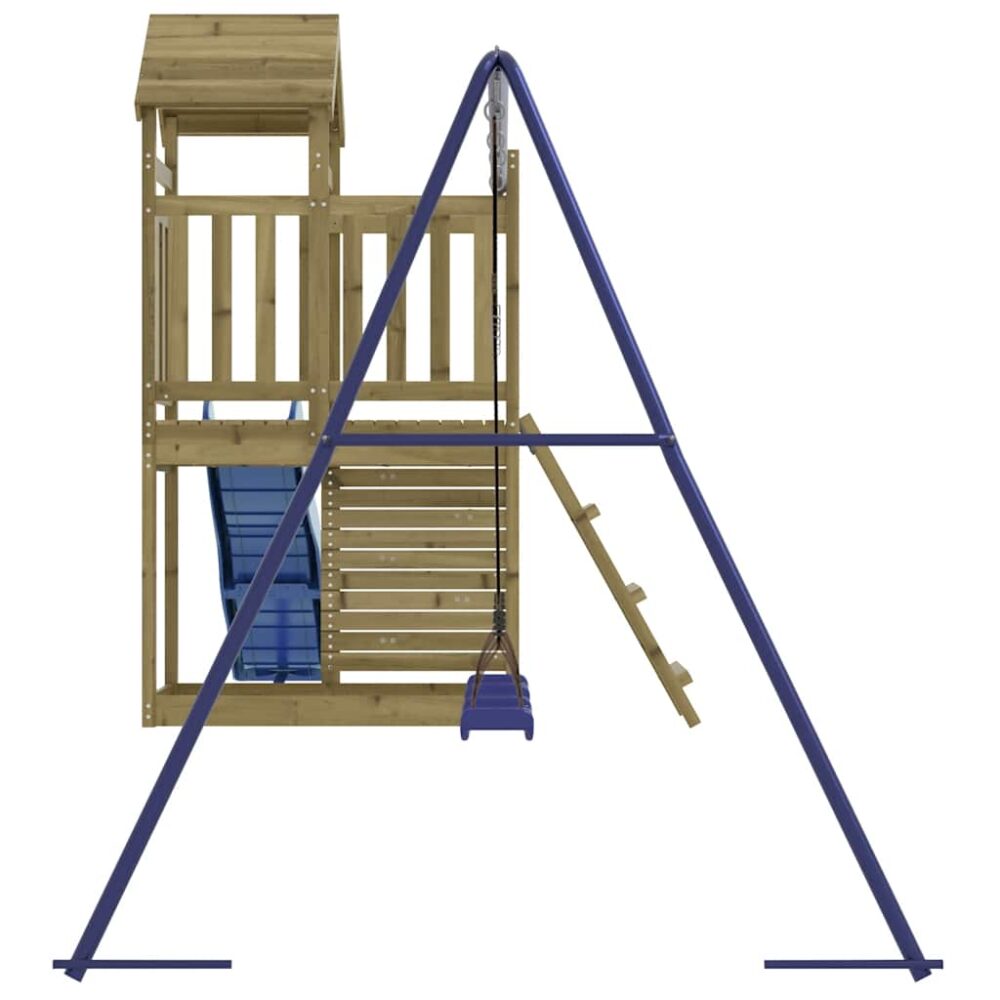 Quer dar às suas crianças a liberdade de poderem brincar em casa? Este conjunto de brincar para exterior em madeira transforma o seu quintal num parque infantil para aventuras imaginativas! Material durável: esta estrutura de escalar com escorrega é feita em madeira de pinho impregnada por vácuo-pressão. A madeira de pinho maciça é um bonito material natural. A madeira de pinho possui um grão reto e os nós conferem ao material o seu aspeto rústico. A impregnação é um processo de preservação que é levado a cabo através da utilização de autoclaves. O tratamento sob pressão aumenta a resistência à decomposição e às intempéries. Estrutura robusta e estável: a madeira da estrutura de escalar para jardim assegura robustez e estabilidade. Para além disso, as cordas em forma de A do baloiço para crianças oferecem equilíbrio.Centros multi-atividades: a estrutura de escalar inclui uma plataforma com 90 cm de altura e destaca-se pelo seu escorrega ondulado, escada, baloiços, parede de escalar e caixa de areia. Os seus pequenitos também podem convidar os seus amigos para se juntarem à diversão. Design bem pensado: os corrimões de madeira circundantes foram concebidos para assegurarem a segurança das crianças durante as suas brincadeiras felizes. Para além disso, o telhado de madeira proporciona sombra às crianças durante os dias quentes de verão. Diversão sem fim: esta casa de brincar para exterior em madeira proporciona imensa diversão e é a forma perfeita das suas crianças e dos seus amigos se divertirem, terem mais tempo interativo e criarem memórias para eles e para si! Atenção:Apenas para utilização domésticaUtilização ao ar livre Não é adequada para crianças com menos de 3 anos de idade Idade recomendada do utilizador: 3-8 anos Nota:O produto deve ser ancorado para reduzir o perigo de queda. As âncoras não estão incluídas. Útil saber:A entrega inclui apenas o slide, o teatro não está incluído.De forma a tornar a montagem o mais fácil possível, cada produto é entregue com um manual. Aviso. Não é adequado para crianças com menos de 3 anos. Apenas para uso doméstico. GPSR