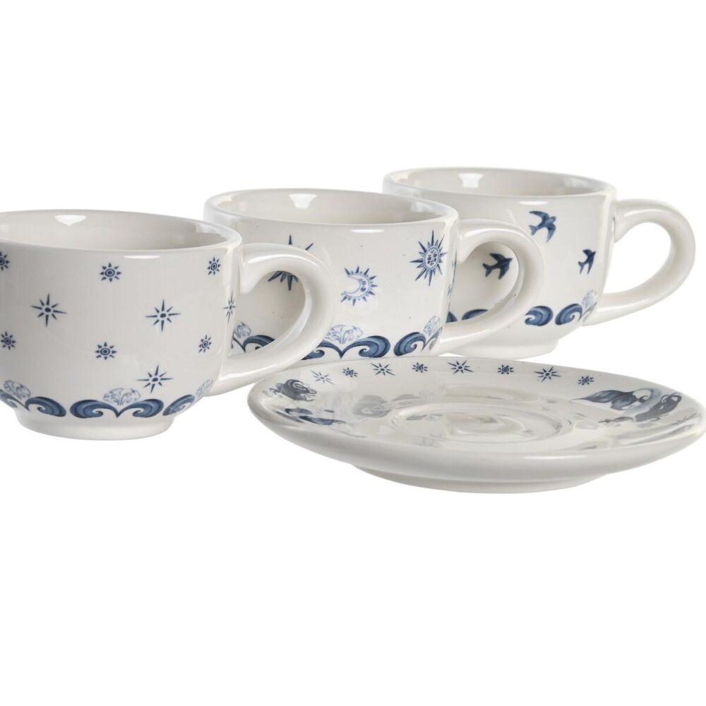 Se gosta de tratar de cada detalhe do seu lar e estar na moda em produtos que lhe vão facilitar a vida, compre Conjunto de Chávenas com Pratos DKD Home Decor Azul Branco Metal Dolomite 180 ml 20 x 18 x 20 cm ao melhor preço.
