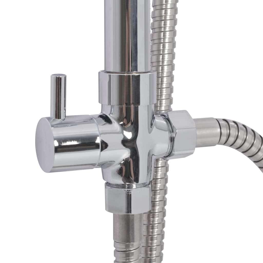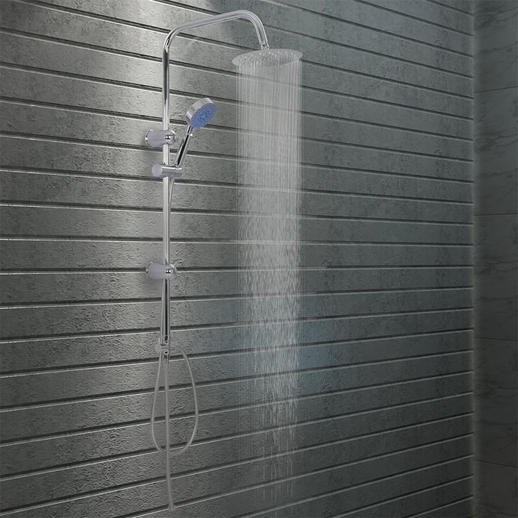 O confortável conjunto completo é composto por um chuveiro fixo de aço inoxidável e um chuveiro de mão fabricado em plástico ABS sólido. A cabeça do chuveiro fixo é ajustável, podendo ser adaptada às suas próprias necessidades, mesmo após a instalação. O sistema fácil de limpar evita depósitos de calcário nos bicos. Os 60 bicos na cabeça do chuveiro fixo e os 63 bicos no chuveiro de mão fornecem um jato uniforme e uma cobertura total da água. Graças à característica anti-torção, o torcer irritante das mangueiras é prevenido. A barra do chuveiro pode ser montada com os parafusos e outros materiais de montagem incluídos na entrega.