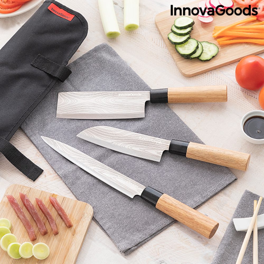 Conjunto de Facas Japonesas com Estojo de Transporte Profissional Damas·Q InnovaGoods Kitchen Cookware