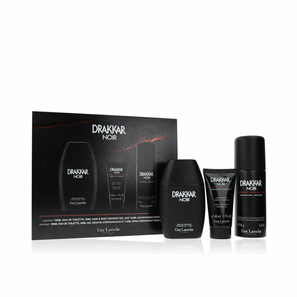 Gostaria de oferecer um lote de perfumeria e cosmética? Conjunto de Perfume Homem Guy Laroche DRAKKAR NOIR EDT 3 Peças 100 % original é um pack exclusivo, ideal para fazer uma surpresa a um familiar ou amigo. Não deixe escapar os produtos Guy Laroche 100 % originais!