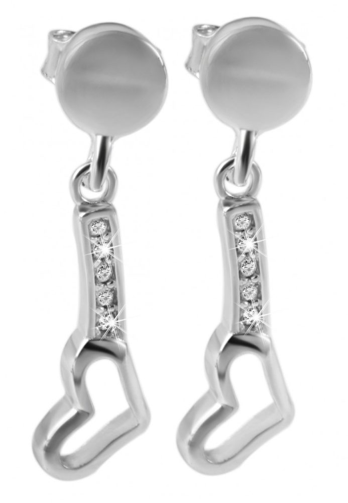 O conjunto de joias, composto por brincos e pingente correspondente, é feito de prata esterlina 925 e adicionalmente banhado a ródio. Este revestimento de alta qualidade protege as joias contra manchas e garante um brilho duradouro. Os brincos são totalmente engastados com 5 pedras de zircônia cada. Têm comprimento de 23 mm, largura de 6 mm e espessura de 2,5 mm. Os brincos podem ser presos ao orifício da orelha com um…