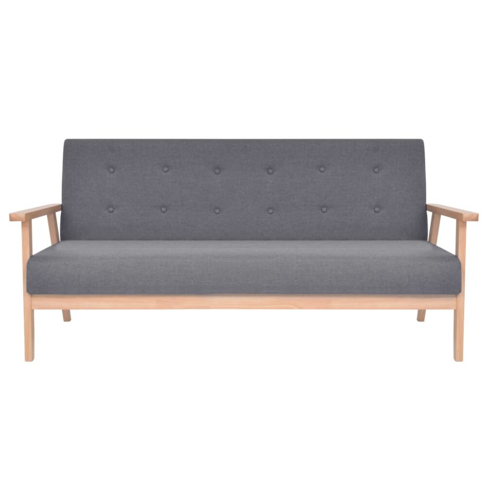 Este conjunto de sofás altamente confortável possui um design discreto e será ideal para conversar, ler, ver TV ou simplesmente relaxar. O conjunto de sofás é estofado em tecido de poliéster macio e acolchoado com espuma para um maior conforto. Com uma estrutura de madeira maciça, o sofá é estável e durável. A montagem é muito fácil. A entrega inclui um cadeirão e um sofá de 3 lugares.