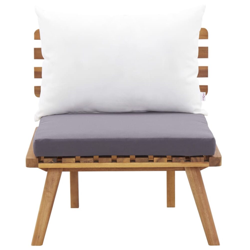 Este conjunto de móveis de jardim é feito em madeira de acácia maciça, uma madeira tropical, resistente às intempéries e altamente durável. Este conjunto também é entregue com almofadões de assento e encosto espessamente acolchoados e altamente confortáveis. As capas dos almofadões são removíveis e laváveis. O conjunto de móveis de jardim precisa de montagem.