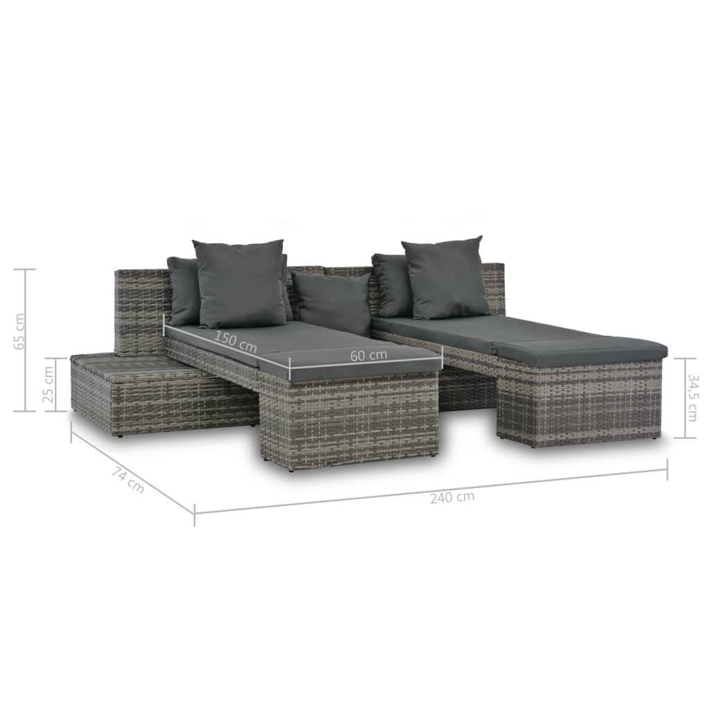 Graças ao vime PE resistente ao clima, o conjunto é fácil de limpar, robusto e adequado para utilização diária em ambientes exteriores. A estrutura de aço revestido a pó assegura ao conjunto robustez e estabilidade. Uma vez que a construção é leve, todos os artigos são fáceis de deslocar para se adequarem a qualquer ambiente. O conjunto oferece o máximo conforto com as suas almofadas e almofadões…