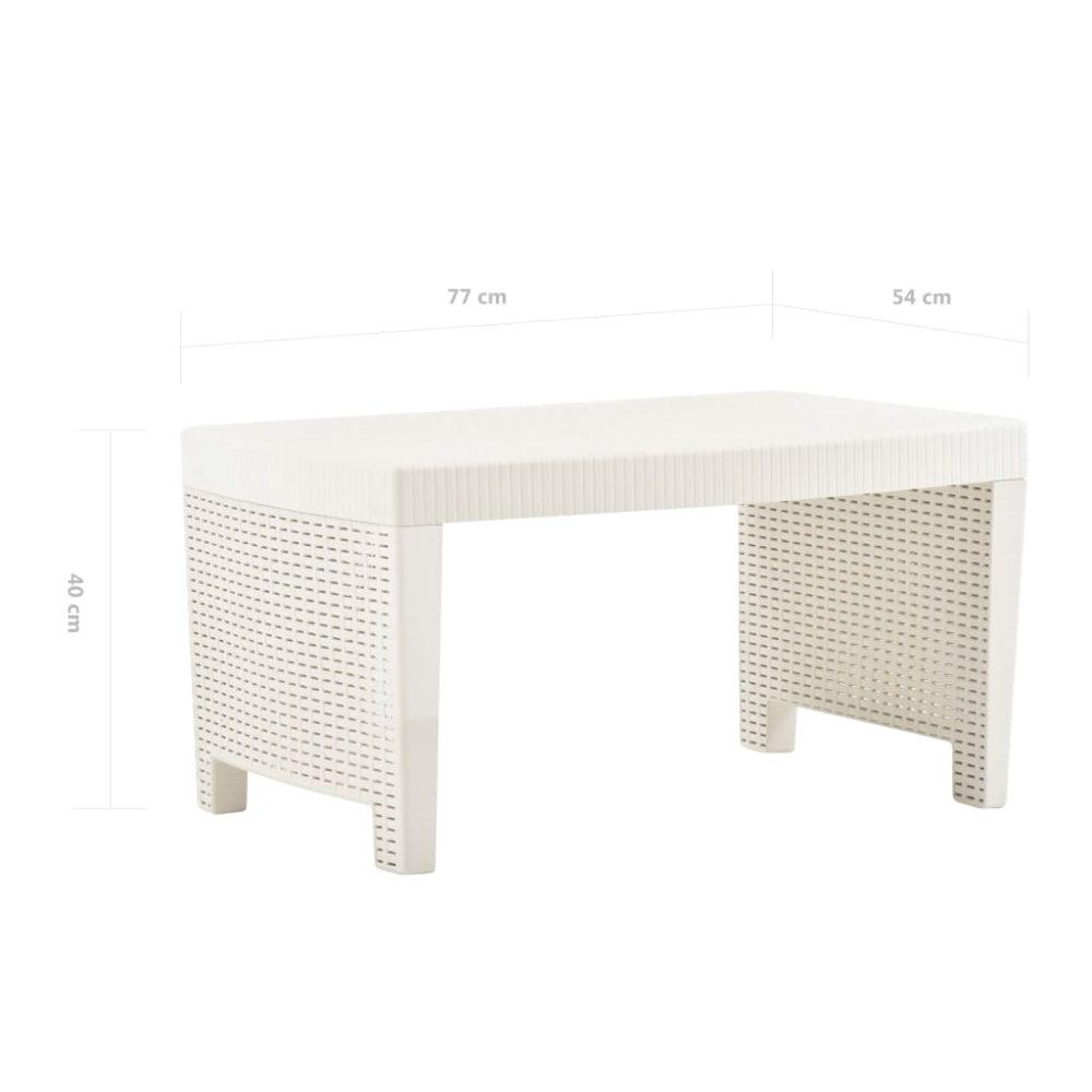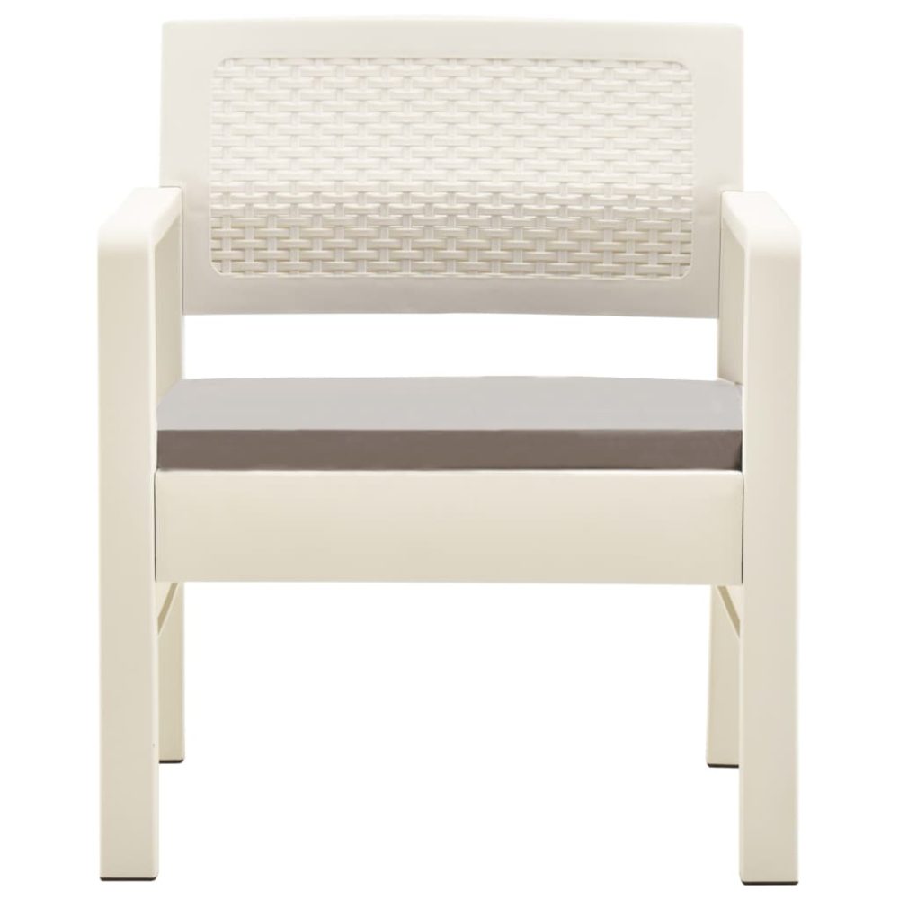 Este conjunto lounge é perfeitamente adequado para utilização ao ar livre graças ao seu material plástico sólido, leve, durável, resistente às intempéries e fácil de limpar. Os almofadões de assento em poliéster atribuem um conforto extra aos cadeirões. O conjunto de móveis de jardim é fácil de montar.
