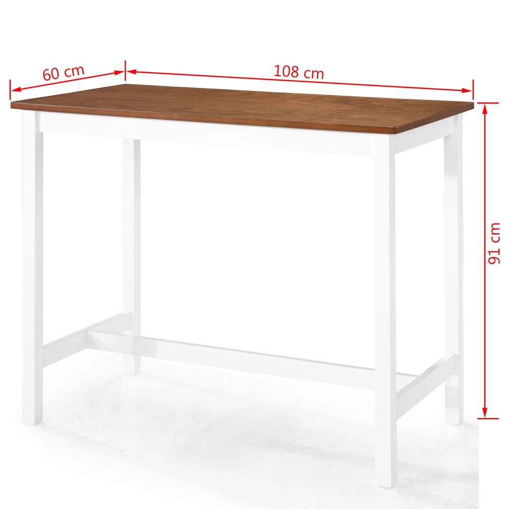 Esta mesa de bar possui um tampo em MDF e pernas de madeira maciça. Os bancos são totalmente feitos de madeira maciça, atribuindo-lhes robustez e durabilidade. O conjunto de bar recebeu um bonito acabamento (lixado, pintado e envernizado) para lhe conferir um aspeto requintado. A mesa e os bancos são fáceis de limpar com um pano húmido. A montagem é fácil.