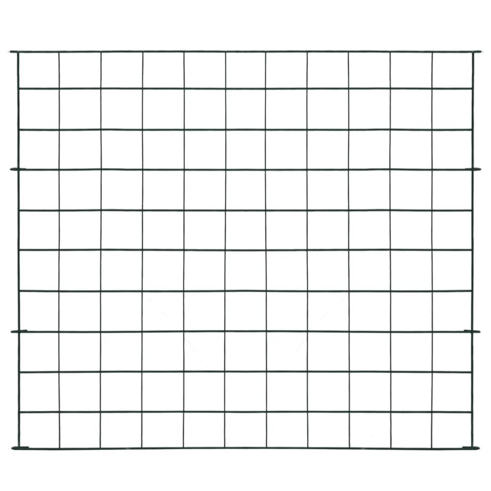 Este conjunto de painéis de vedação foi construído com arame de aço revestido a pó e resistente à ferrugem e assegura uma utilização duradoura e fiável ao ar livre. É fácil de instalar com os postes de fixação sólidos que são colocados ao lado dos ilhós dos elementos da cerca e depois martelados no chão.