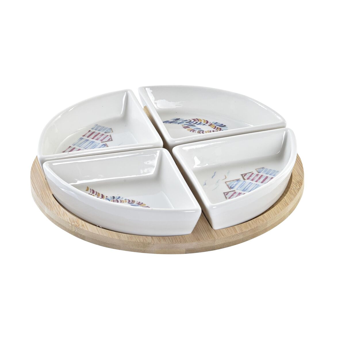 Se gosta de tratar de cada detalhe do seu lar e estar na moda em produtos que lhe vão facilitar a vida, compre Conjunto para Aperitivos DKD Home Decor Azul Natural Bambu Grés Mediterrâneo 21,5 x 21,5 x 1 cm (5 pcs) ao melhor preço.