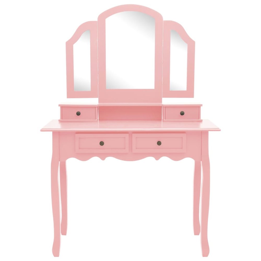 Este encantador conjunto de toucador e banco é feito em madeira paulownia de alta qualidade. O seu estilo vitoriano e acabamento em rosa limpo adicionarão um toque de elegância e beleza ao seu quarto, salão pessoal ou vestiário. O acabamento requintado é uma característica marcante deste conjunto de mesa e banco.