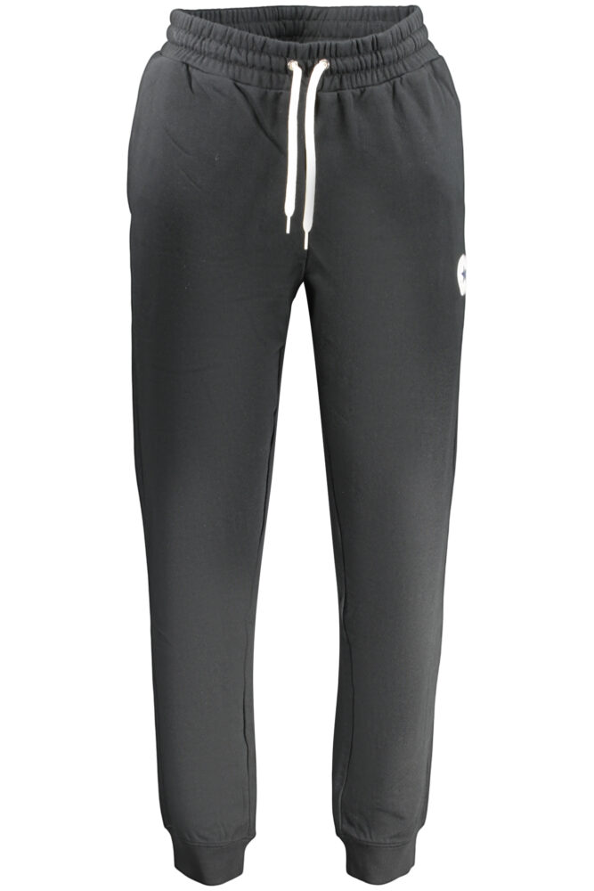 Apresenta cintura elástica com atacadores, 3 bolsos, punho no tornozelo, apliques e logótipo, ideal para atividades desportivas e uso diário.