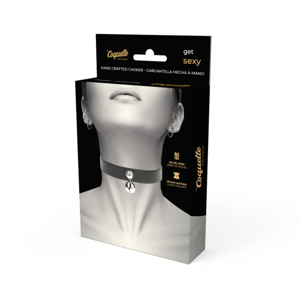 Coquette Chic Desire® Colar De Couro Vegano Mulher Com Acessório De Chocalho