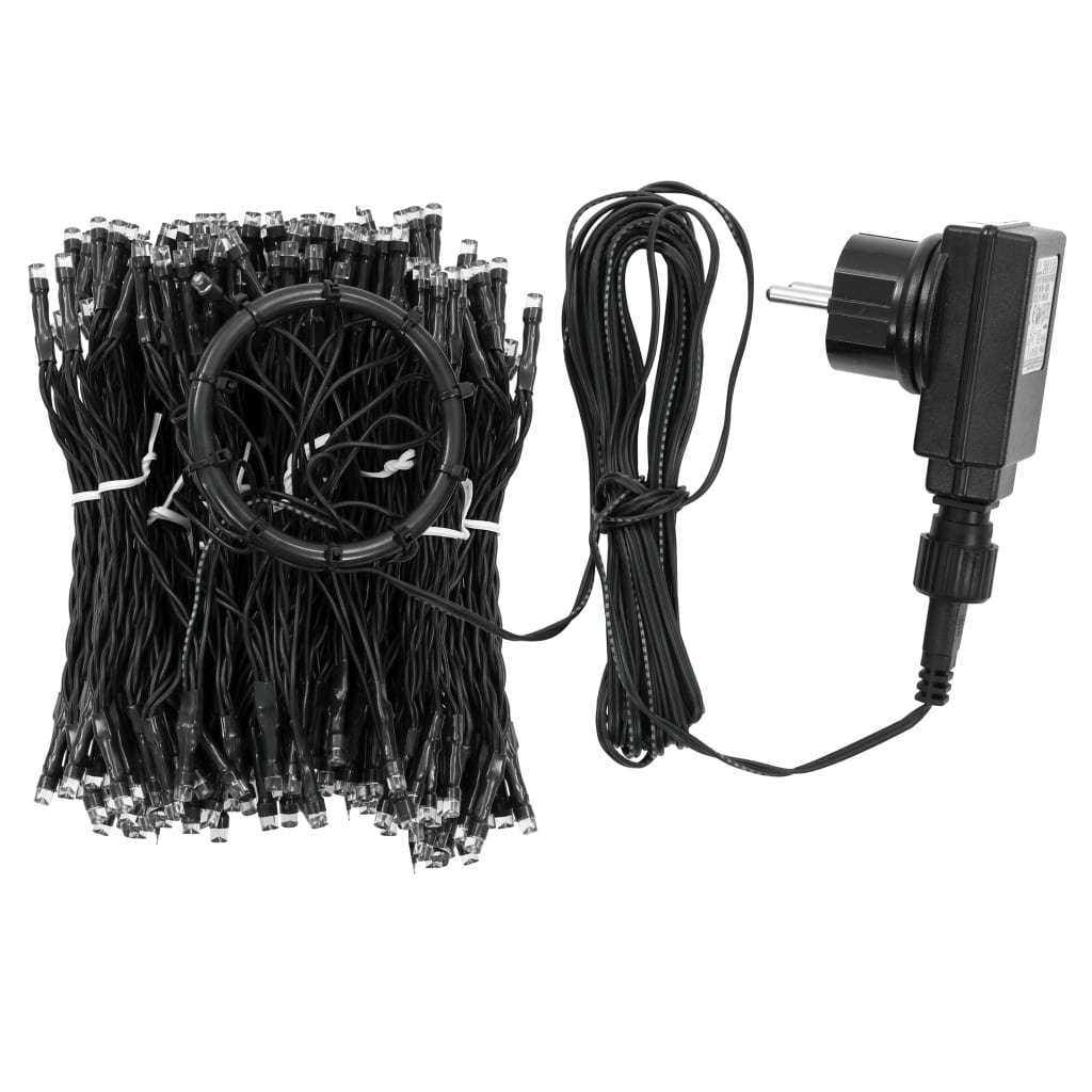 As luzes consistem em 300 LED, que são muito eficientes em termos energéticos e emitem uma luz branca quente. Esta linda decoração de Natal é resistente à água sendo portanto adequada para uso interior e exterior. Pode facilmente colocar esta decoração no topo da sua árvore de Natal e os seus cordões de luz vão cair naturalmente no chão. As luzes serão um verdadeiro destaque, especialmente à noite, e também servirão como uma fonte acolhedora de luz ambiente. Quando não estiverem a ser utilizadas, estas luzes LED podem ser facilmente armazenadas para utilização no próximo Natal. O adaptador também está incluído na entrega.