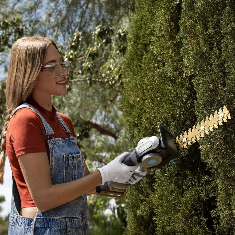 O corta‑sebes manual Cecotec TitaniumSword 2120 Hand XL foi concebido para oferecer um corte preciso e confortável em trabalhos de jardinagem, combinando leveza e elevada eficiência graças ao seu motor sem escovas (Brushless), que reduz o desgaste, melhora o desempenho e prolonga a vida útil da ferramenta. Funciona com bateria de lítio de 20/21 V, amovível e intercambiável, que proporciona total liberdade de movimentos sem cabos e é compatível com outras ferramentas Cecotec de 21 V, otimizando o uso das baterias no jardim. Incorpora lâminas com revestimento de titânio cortadas a laser, concebidas para oferecer um afilamento duradouro e efeito antiaderente, evitando que a resina dos ramos se cole e facilitando muito a limpeza após a utilização. O equipamento inclui dois acessórios de corte 2 em 1: um acessório tipo espada específico para cortes laterais em sebes até 22 mm de diâmetro e um acessório de lâmina frontal com 13 cm de largura, ideal para cortes rectos e uniformes em relva e pequenos arbustos. A sua capacidade de corte permite trabalhar com ramos até 20 mm de diâmetro, oferecendo resultados de nível profissional mesmo em sebes densas e robustas, enquanto o peso reduzido, cerca de 1,24 kg, facilita o manuseamento com menos esforço em utilizações prolongadas. O design inclui um punho rotativo que se ajusta a diferentes posições para adaptar a pega a cada tipo de trabalho e melhorar o conforto em cortes verticais, diagonais ou horizontais, bem como uma cobertura de proteção que ajuda a resguardar as mãos de pequenas projeções e restos de ramos durante a poda. A estética em preto e cinzento combina‑se com uma construção orientada para o uso frequente em jardins domésticos ou semi‑intensivos, proporcionando uma ferramenta versátil, resistente e eficiente para a manutenção regular de sebes e zonas verdes. No conjunto, este modelo apresenta‑se como uma solução completa e equilibrada para quem procura um corta‑sebes a bateria compacto, preciso e preparado para uso continuado na conservação do jardim.