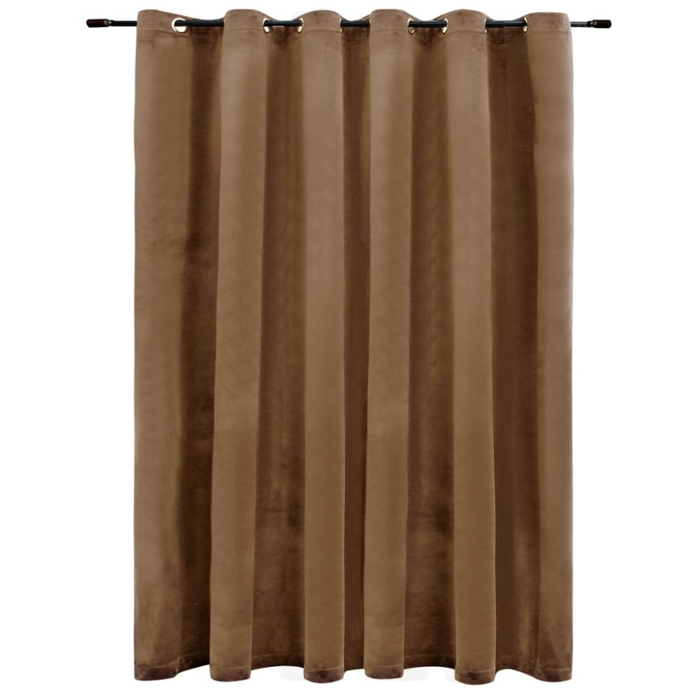 Cortina blackout com argolas em metal 290x245 cm veludo bege - PORTES GRÁTIS