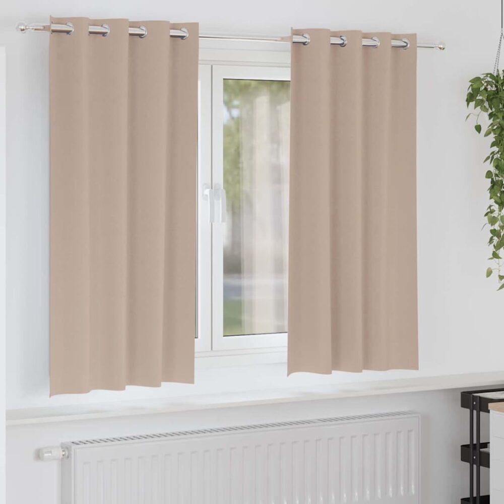 Cortinas 2 pcs Cinzento-acastanhado 175 x 140 cm Poliéster - PORTES GRÁTIS