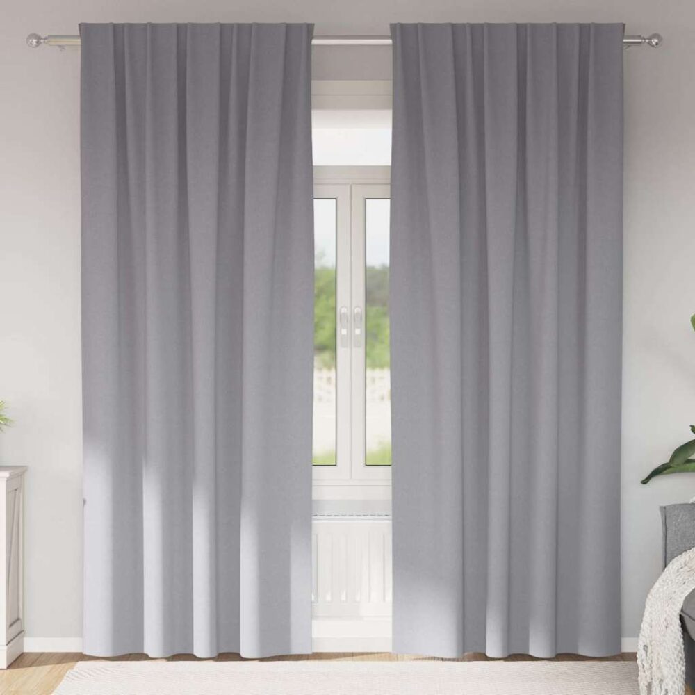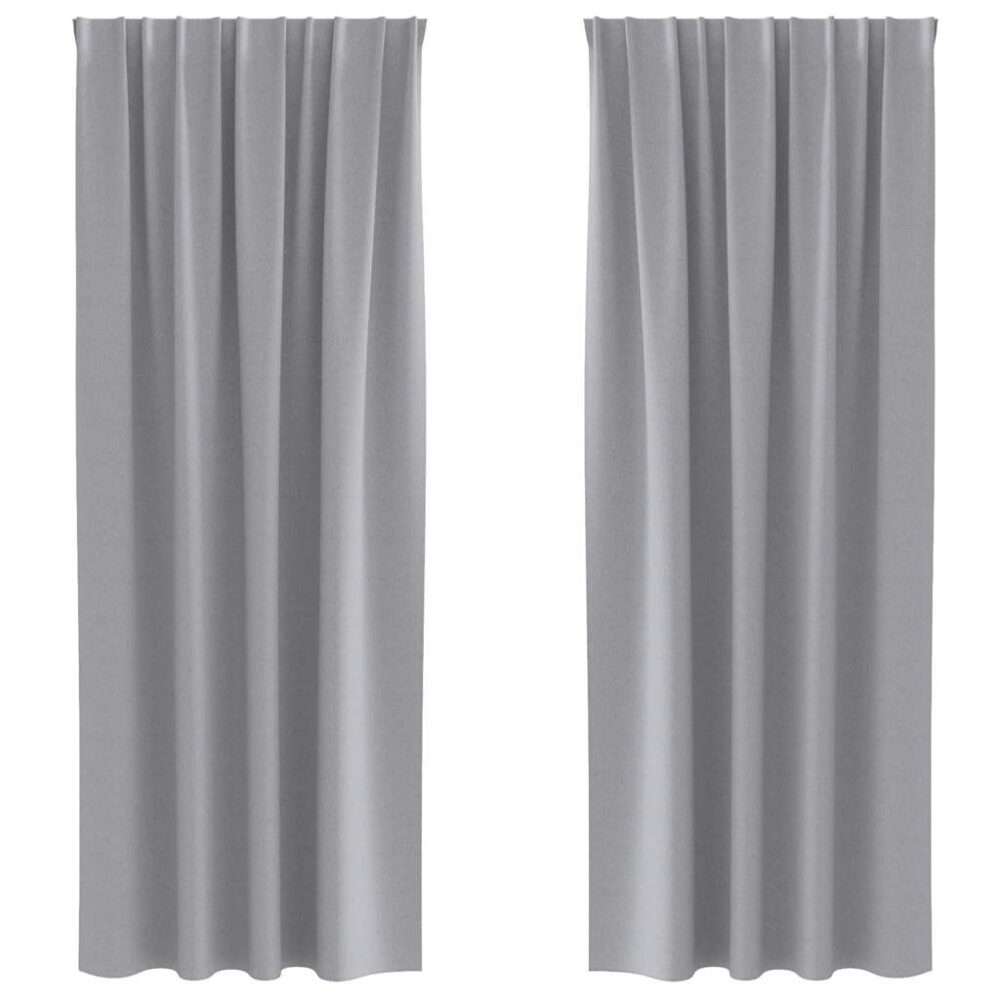 Cortinas 2 pcs Cinzento-claro 245 x 140 cm Poliéster - PORTES GRÁTIS