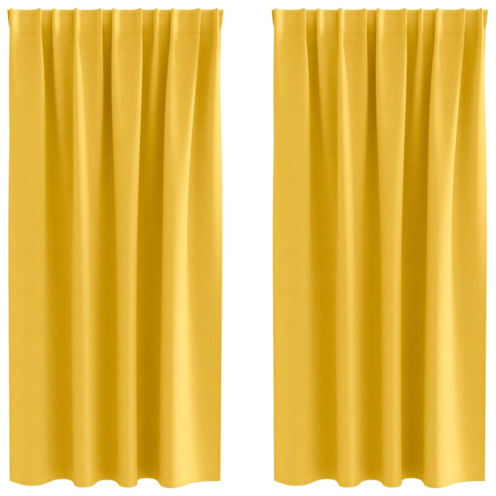 Cortinas com cortinas 2 pcs amarelo mostarda Poliéster - PORTES GRÁTIS