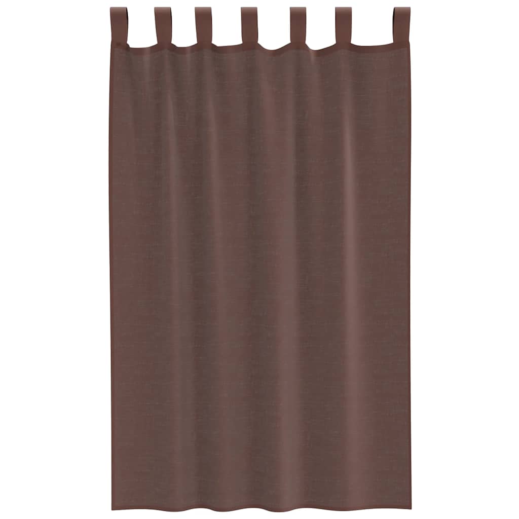 Cortinas de voile com aba 2 pcs castanho - PORTES GRÁTIS