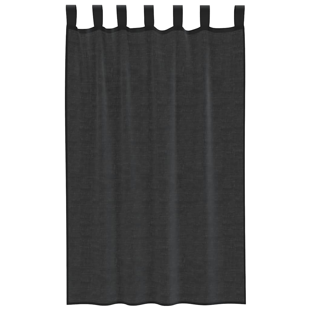 Cortinas de voile com aba 2 pcs preto - PORTES GRÁTIS