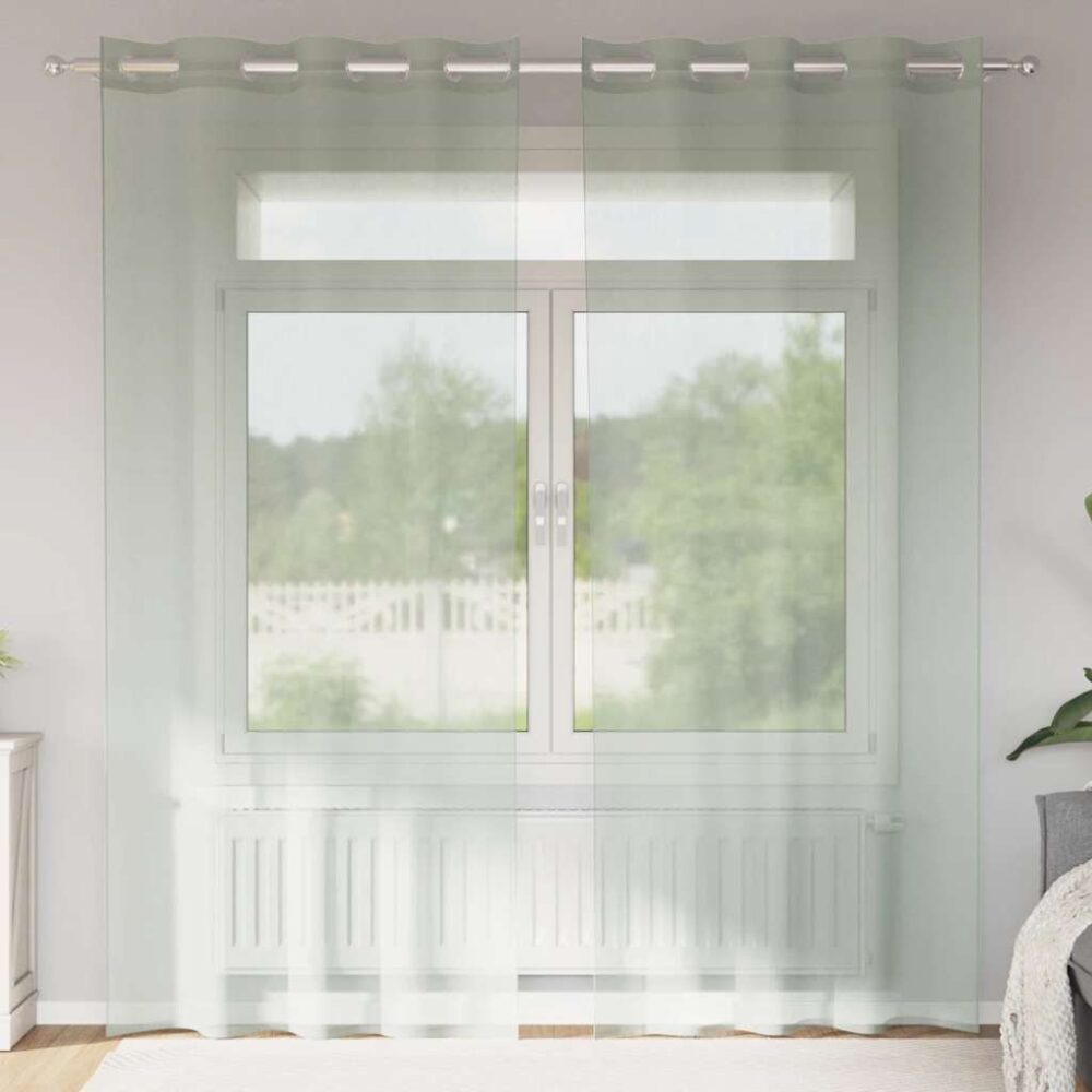 Cortinas de voile com ilhós 2 pcs cinzento-claro 140x245 cm - PORTES GRÁTIS