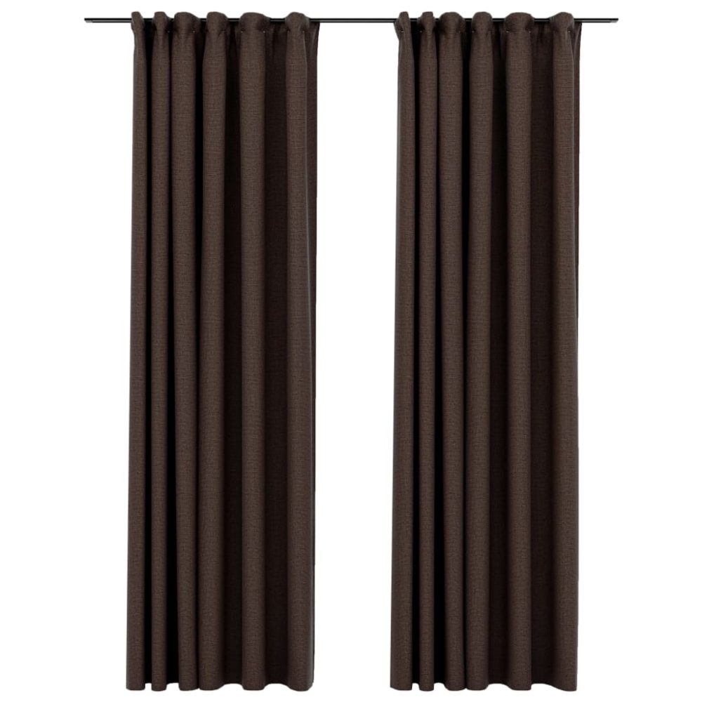 As cortinas podem ser facilmente penduradas nos varões de cortina, graças aos ganchos de metal. As cortinas, feitas de tecido 100% poliéster com aspeto de linho premium, são laváveis à máquina. Observação: o varão da cortina não está incluído.