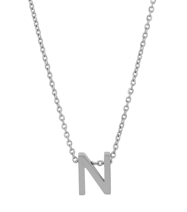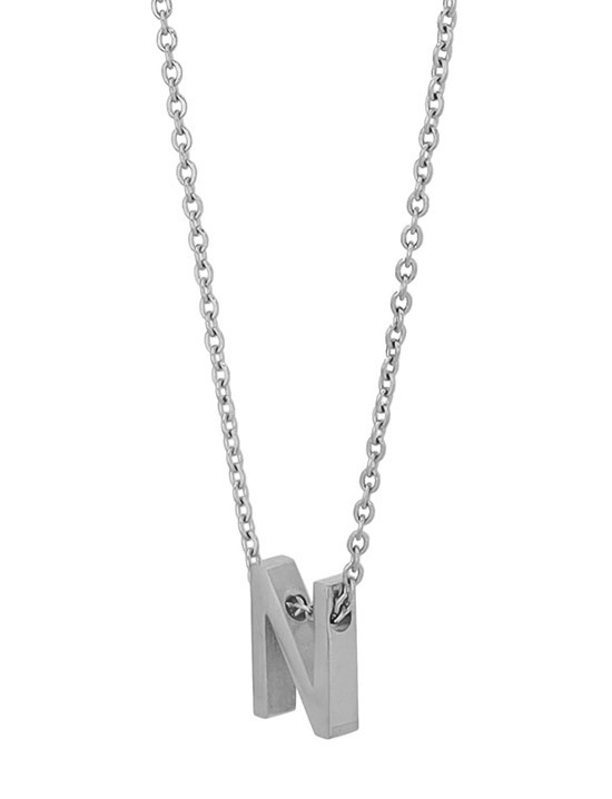 Akzent® Colar “Courrier” Prateado Letra N em Aço Inoxidável 45+5 cm