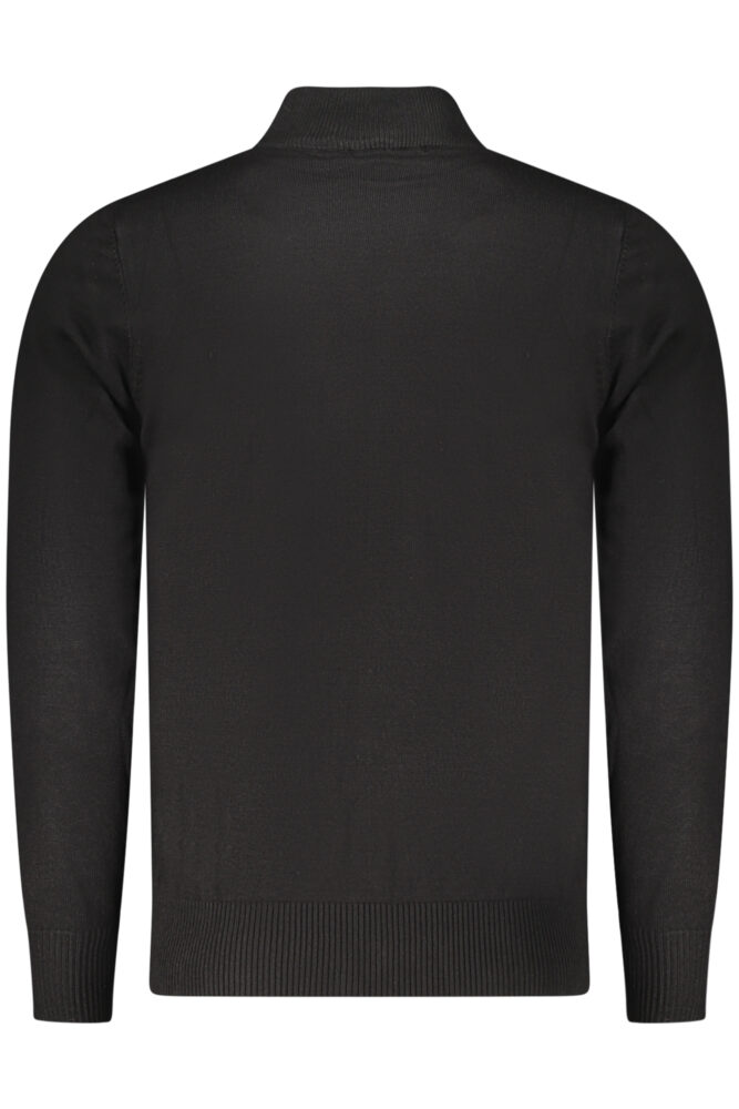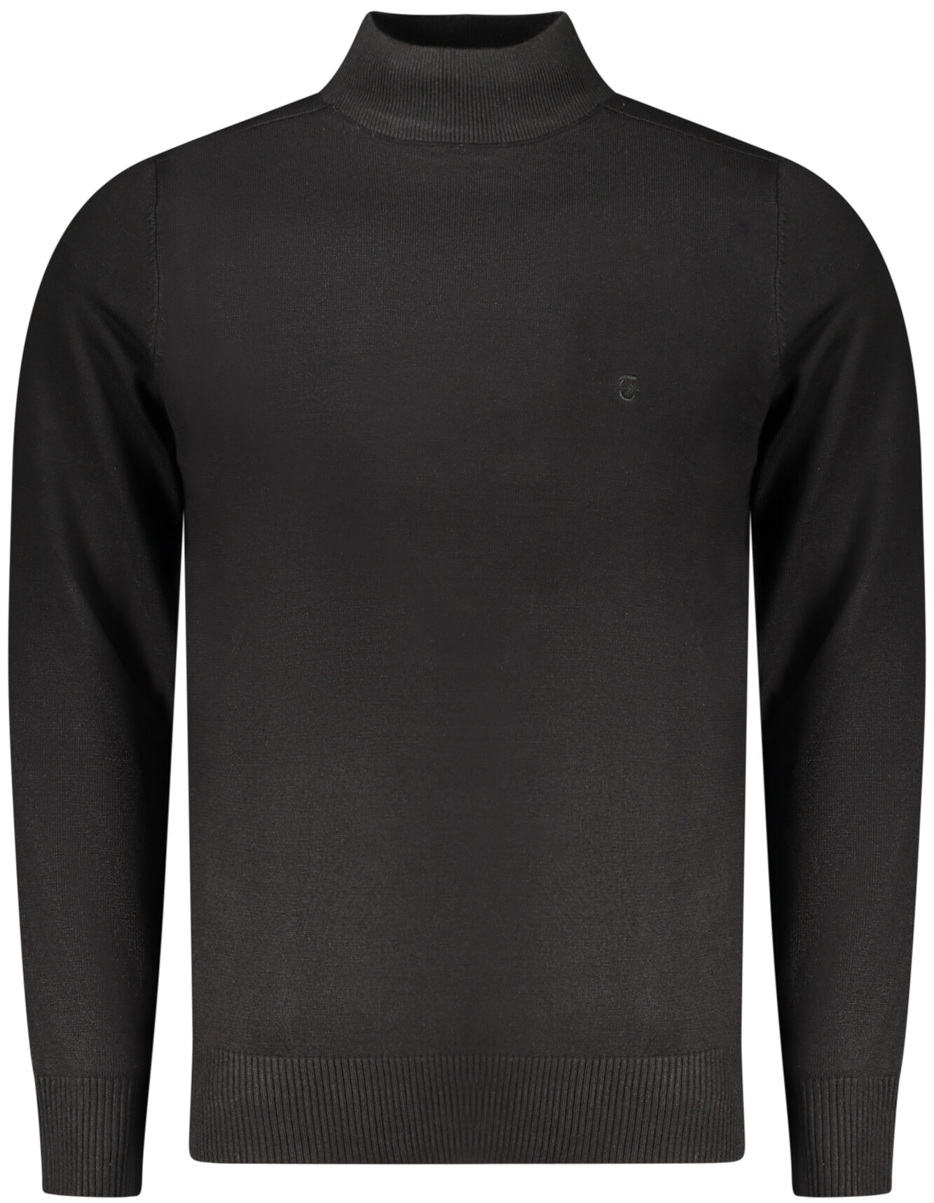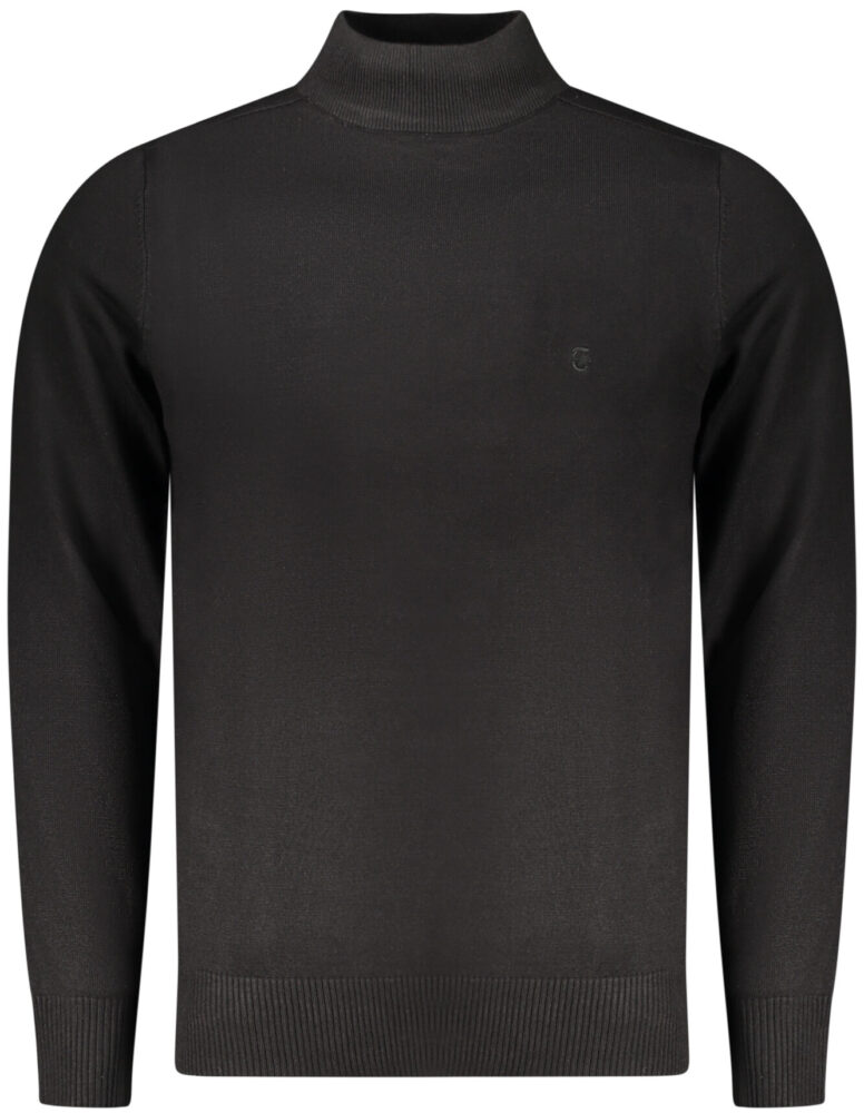 Suéter preto masculino confeccionado em viscosa e nylon, oferecendo toque suave, leveza e durabilidade.