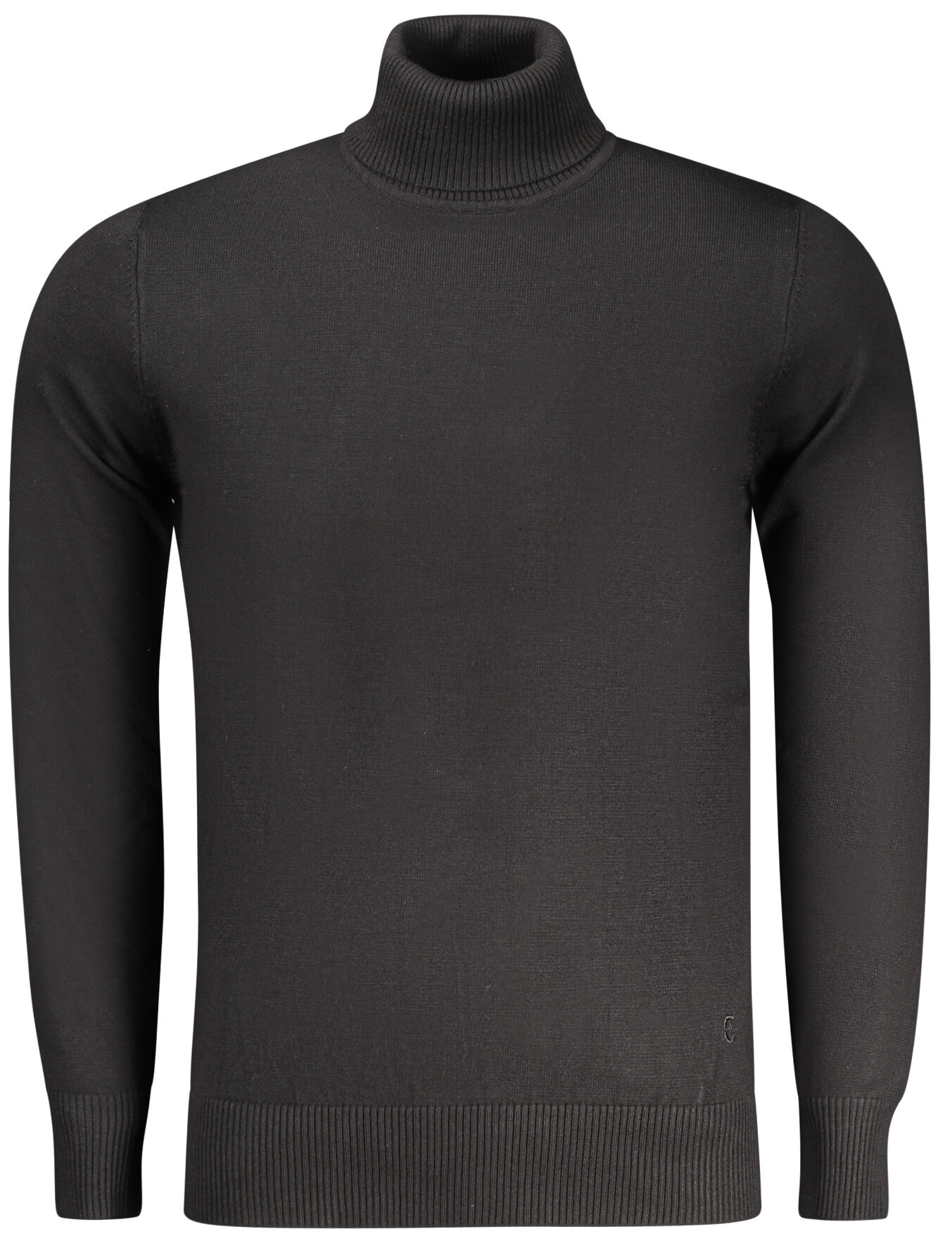 Suéter de gola alta confeccionado em viscosa e nylon, oferecendo toque suave, leveza e boa resistência.