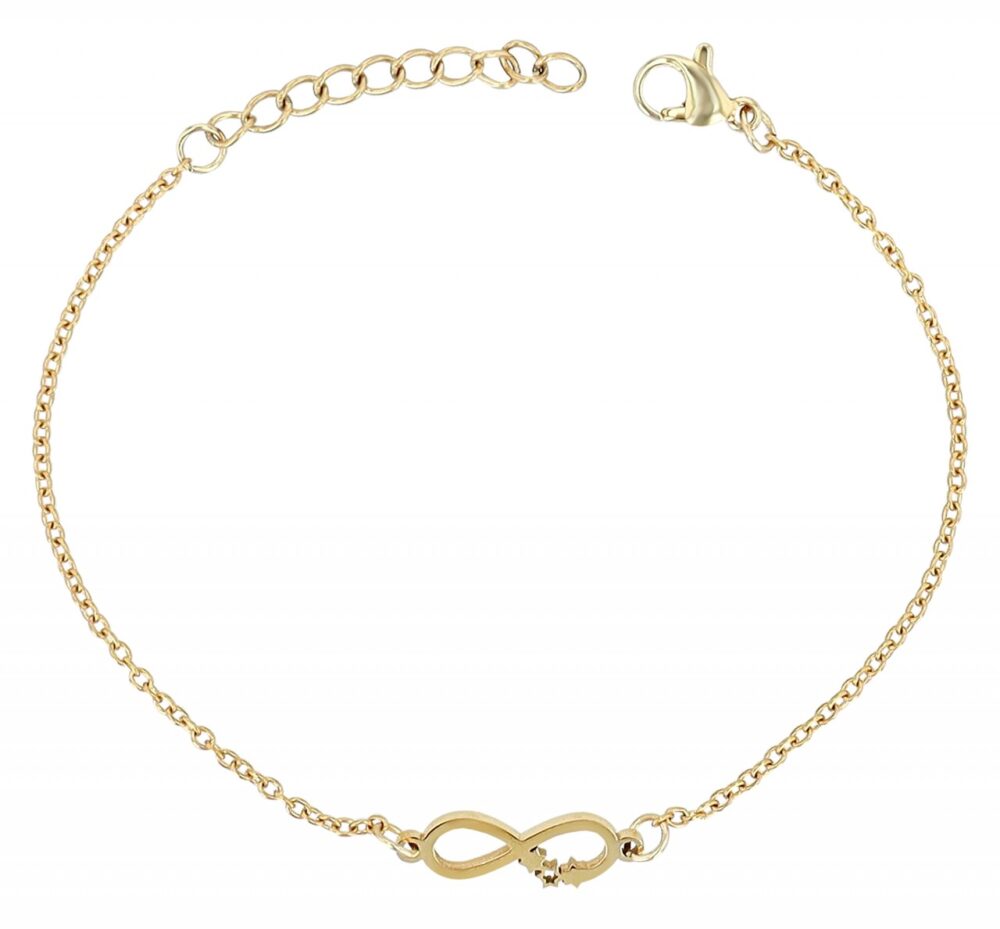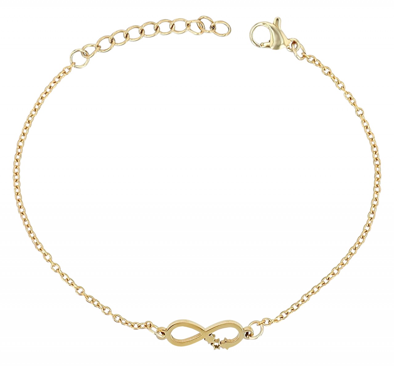 A pulseira é feita de aço inoxidável de alta qualidade. No centro da pulseira há um elemento de aço inoxidável que representa um símbolo do infinito. A pulseira Infinity tem 17 cm de comprimento e pode ser estendida em mais 3 cm, permitindo um ajuste universal para a maioria dos pulsos. Um fecho de pressão garante uma fixação segura e fácil ao pulso. Este fecho não só proporciona uma conexão firme como também permite que você coloque e retire a pulseira sem esforço.