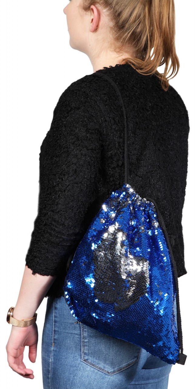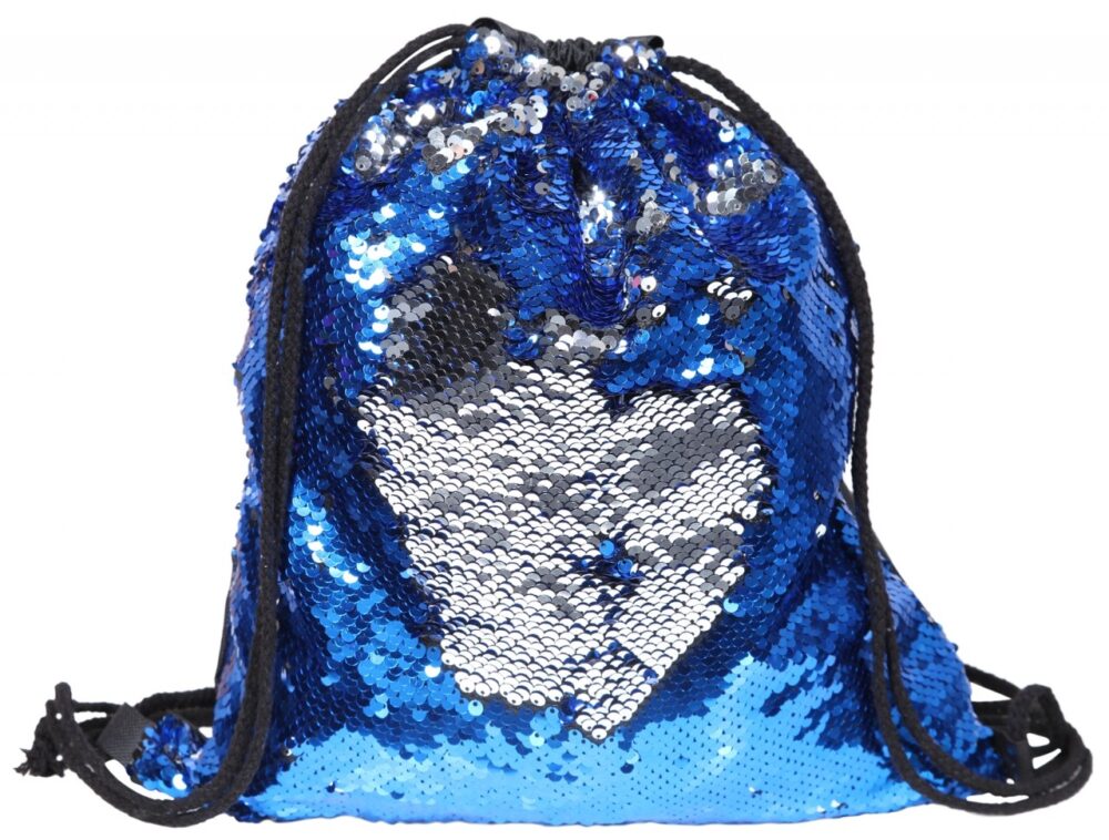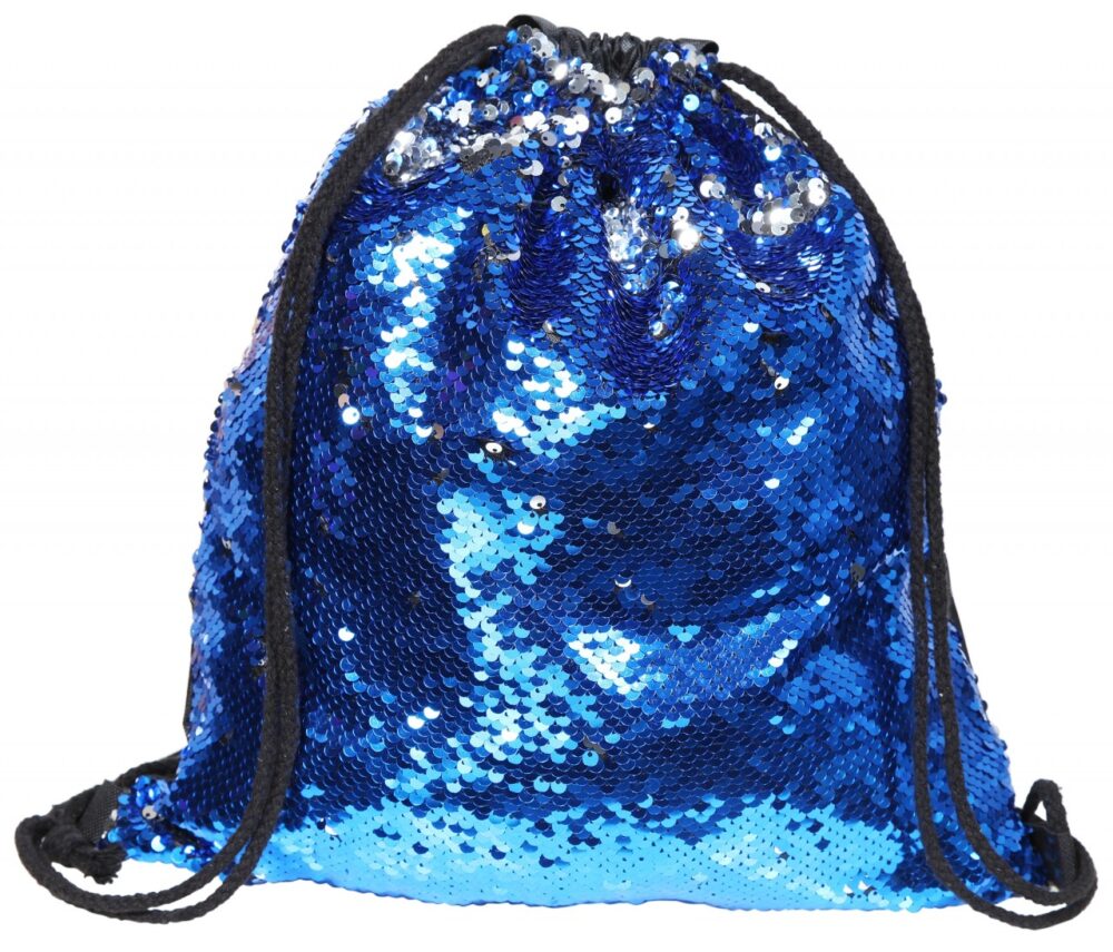 Mestre Artesão® Saco Mochila Azul em Tecido e Lantejoulas - 0144