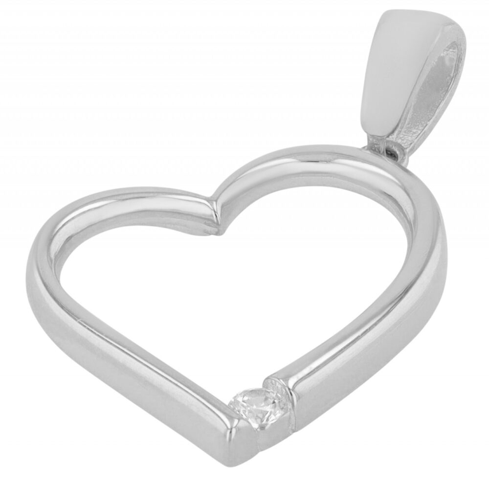 Pingente "Dania" Coração Prateado em Prata de Lei 925 Banhado a Ródio com Zircônia 0432