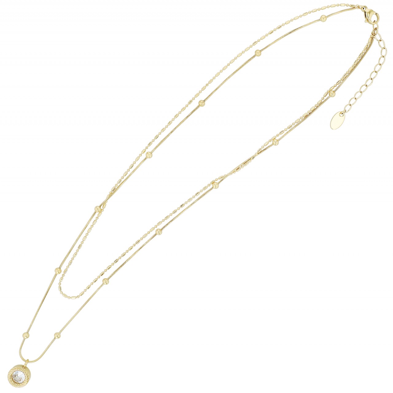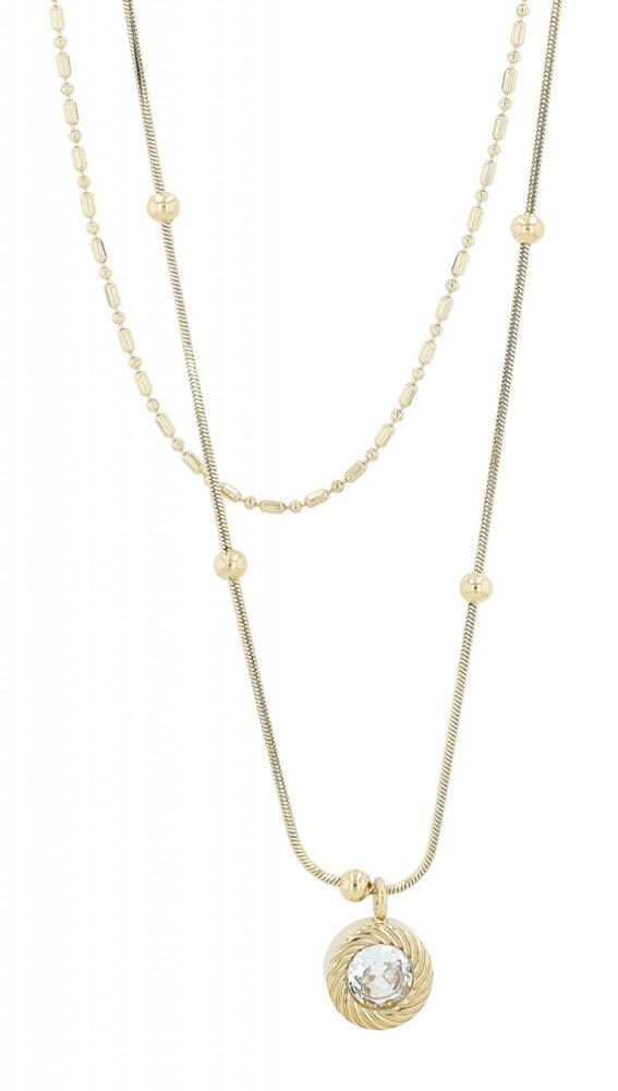 Corrente de aço inoxidável “Two-Layers” – elegância em versão dupla Esta elegante corrente de aço inoxidável de duas fileiras combina leveza delicada com sofisticação elegante. Os comprimentos de 40,5 cm e 46,5 cm, complementados por uma extensão de 5 cm, permitem um ajuste flexível. A corrente superior apresenta um padrão sutil, enquanto a corrente de cobra inferior cria um toque elegante com um pingente redondo (Ø 10 mm) e zircônia brilhante no centro. Pequenas bolas adicionais espaçadas de 3 cm dão um toque especial ao design. Disponível em duas variações de cores, esta joia é a escolha perfeita para ocasiões especiais ou para adicionar um toque de luxo à vida cotidiana.