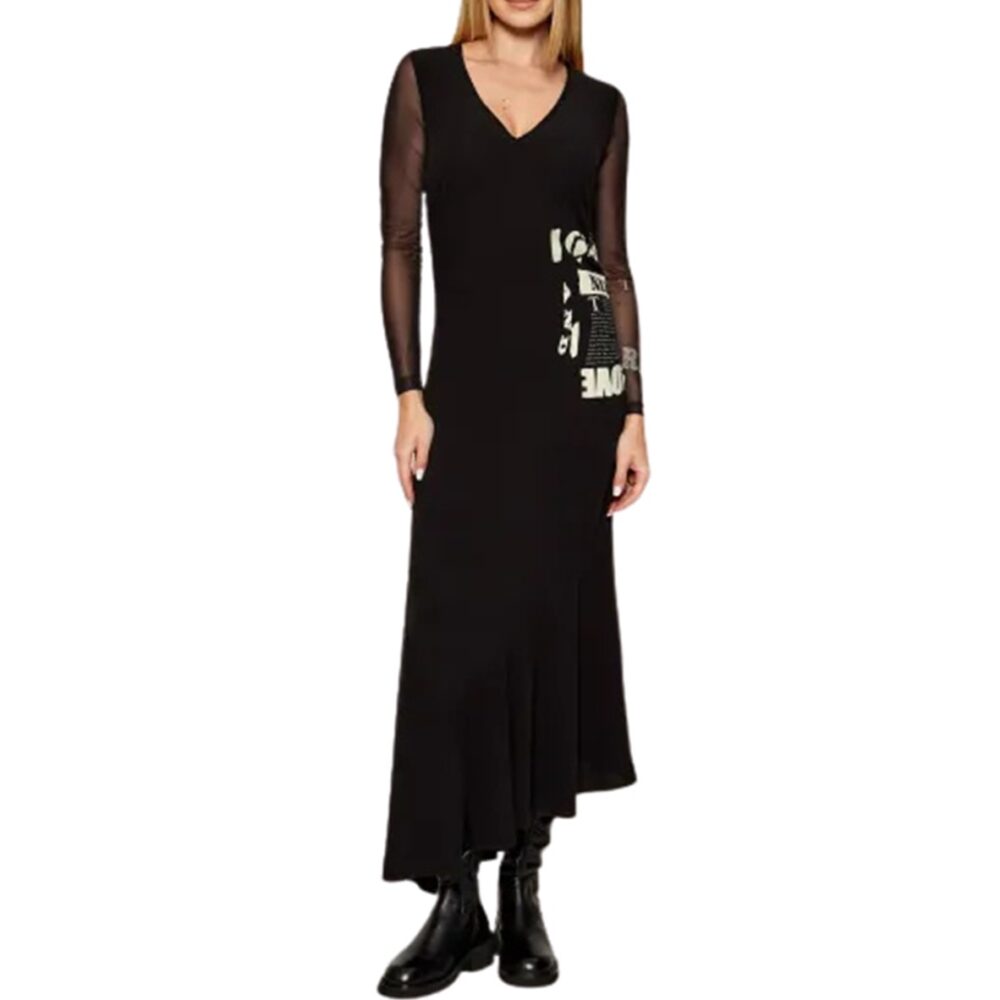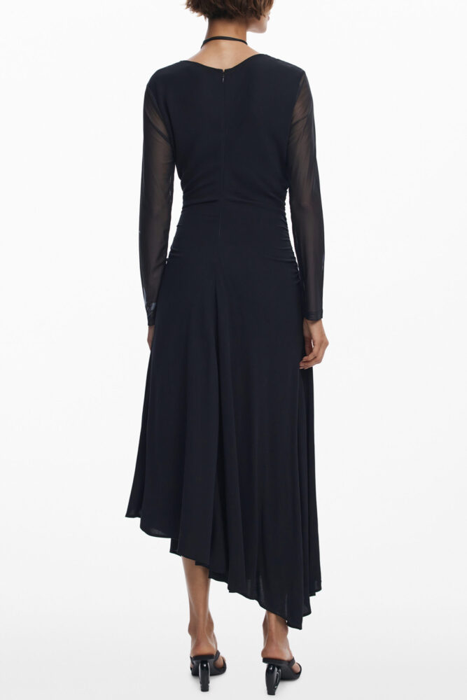 Vestido comprido , mangas compridas decote em V, fecho de correr atrás