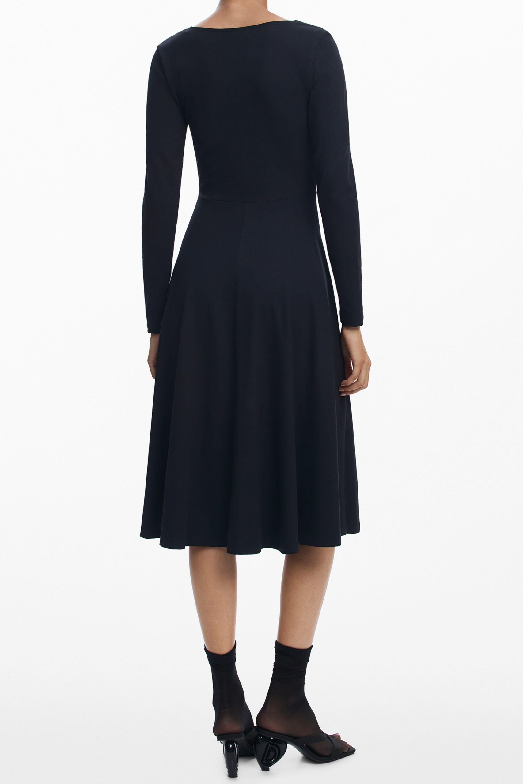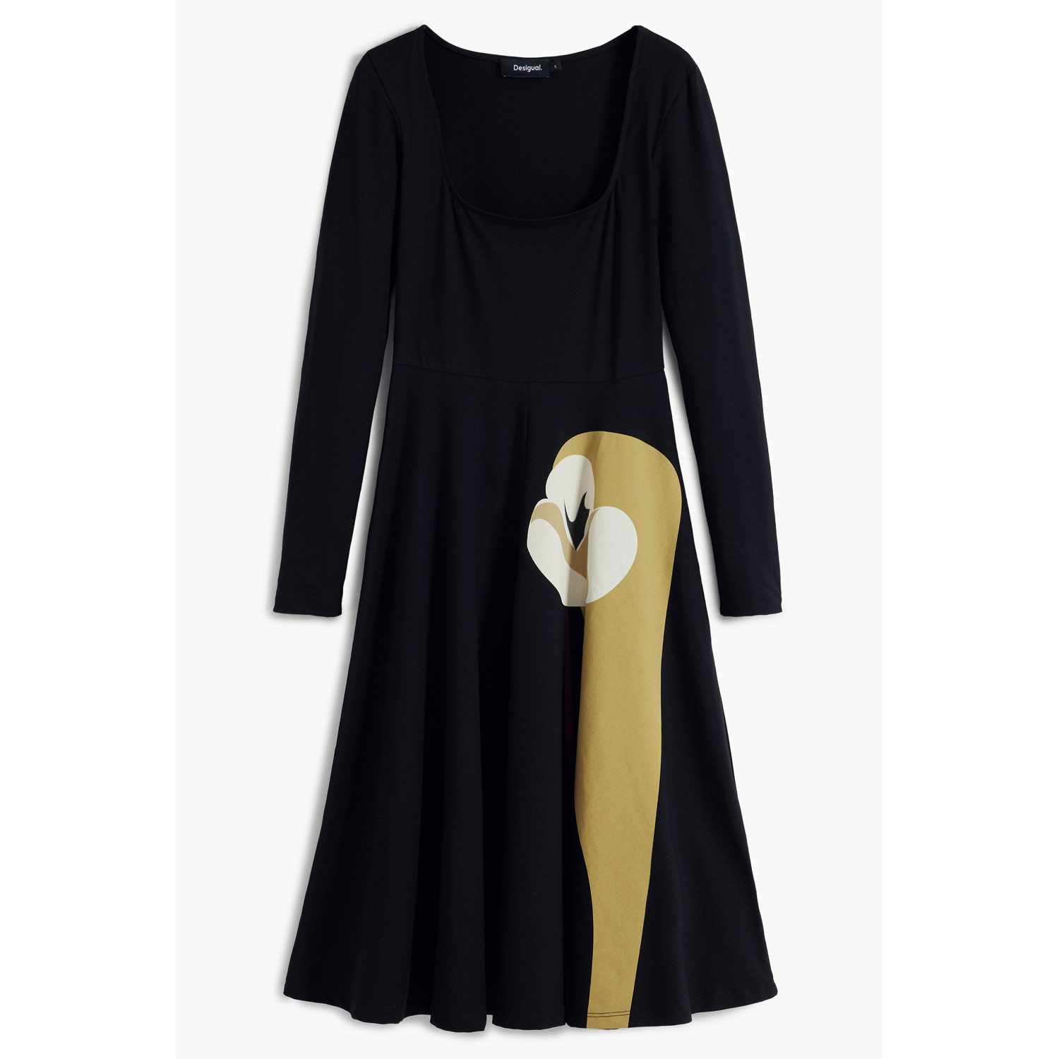Vestido Comprido , mangas compridas , lírio , decote largo , estampado
