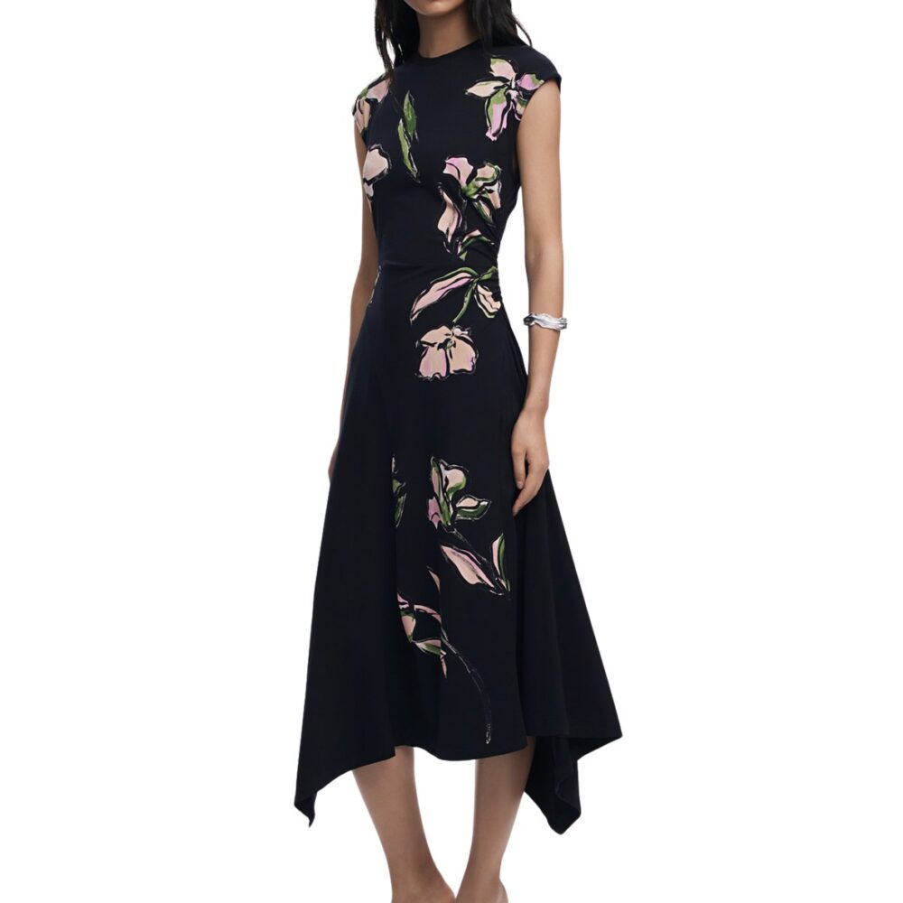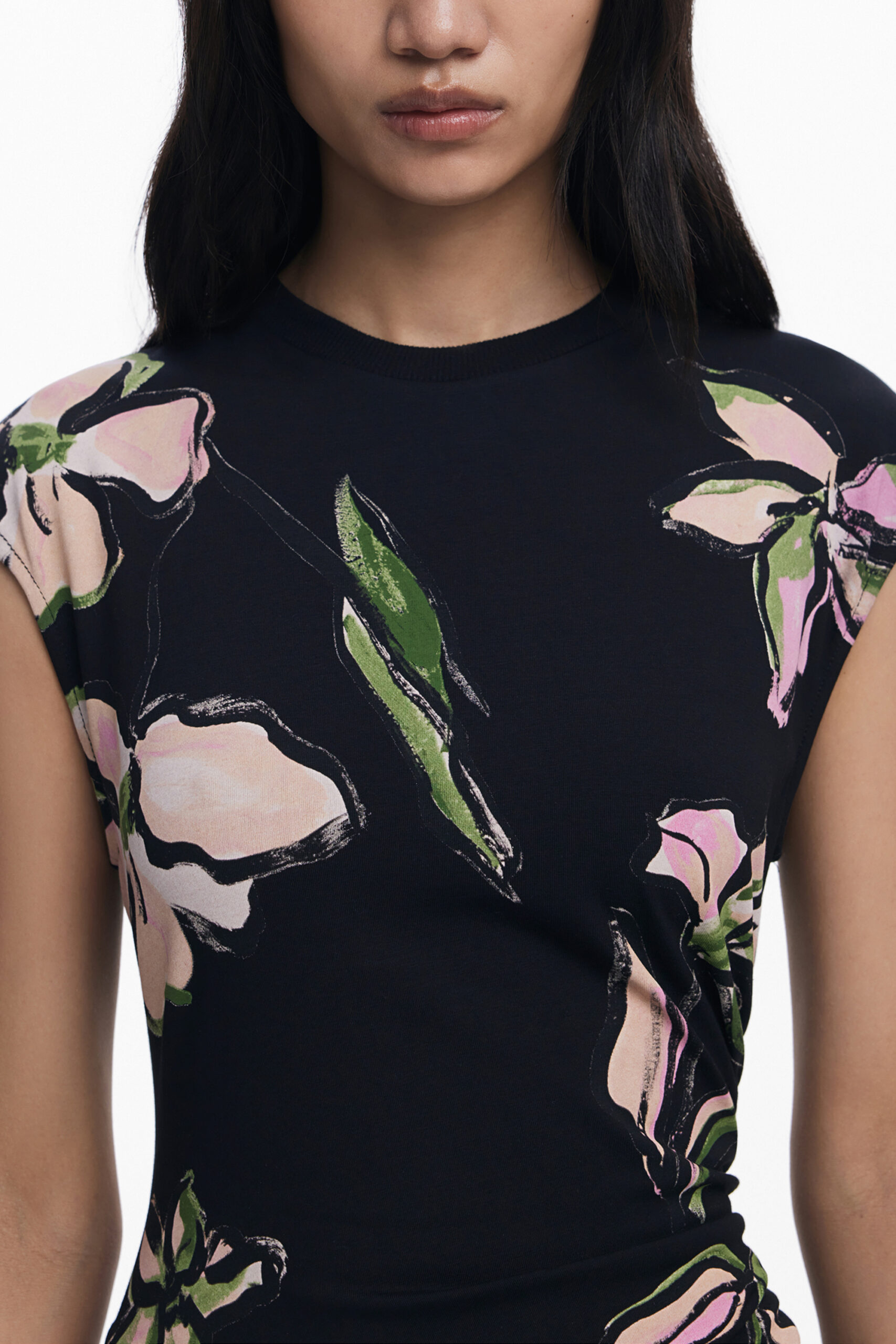 VESTIDO KATRINA COM GOLA REDONDA, MANGAS CURTAS E LOGÓTIPO IMPRESSO