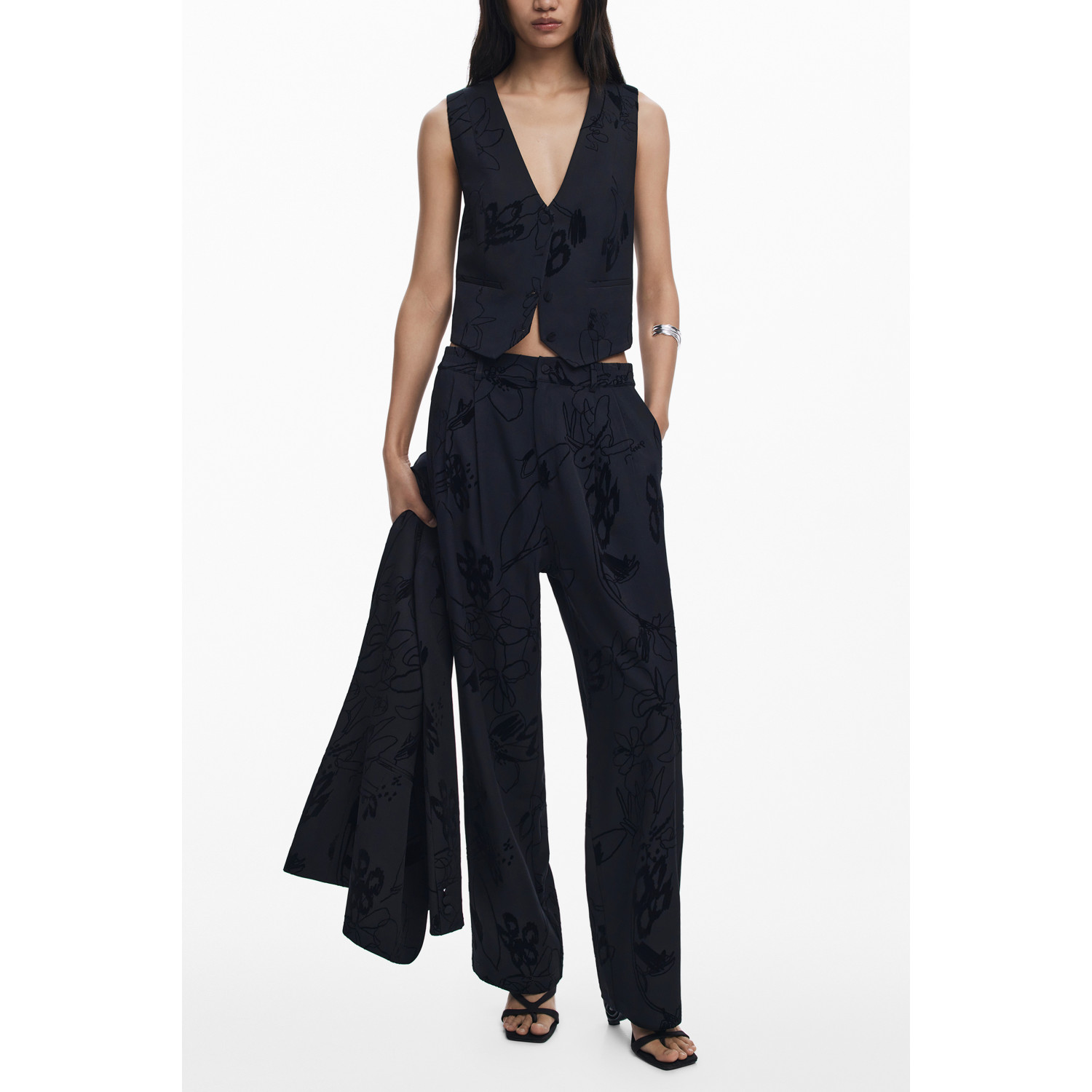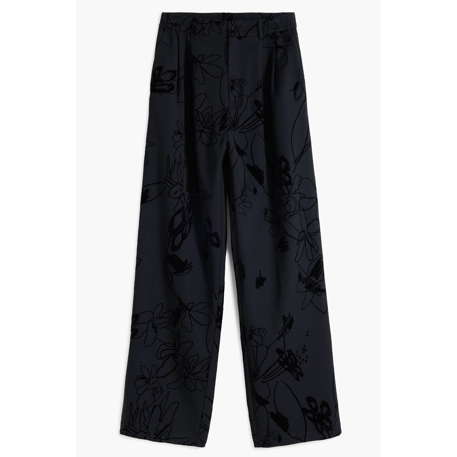 Calças Palazzo , em Flocos, Cintura Elástica com fecho de correr e botão , 4 bolsos pormenores em contraste , logotipo