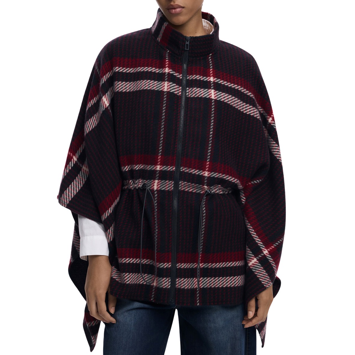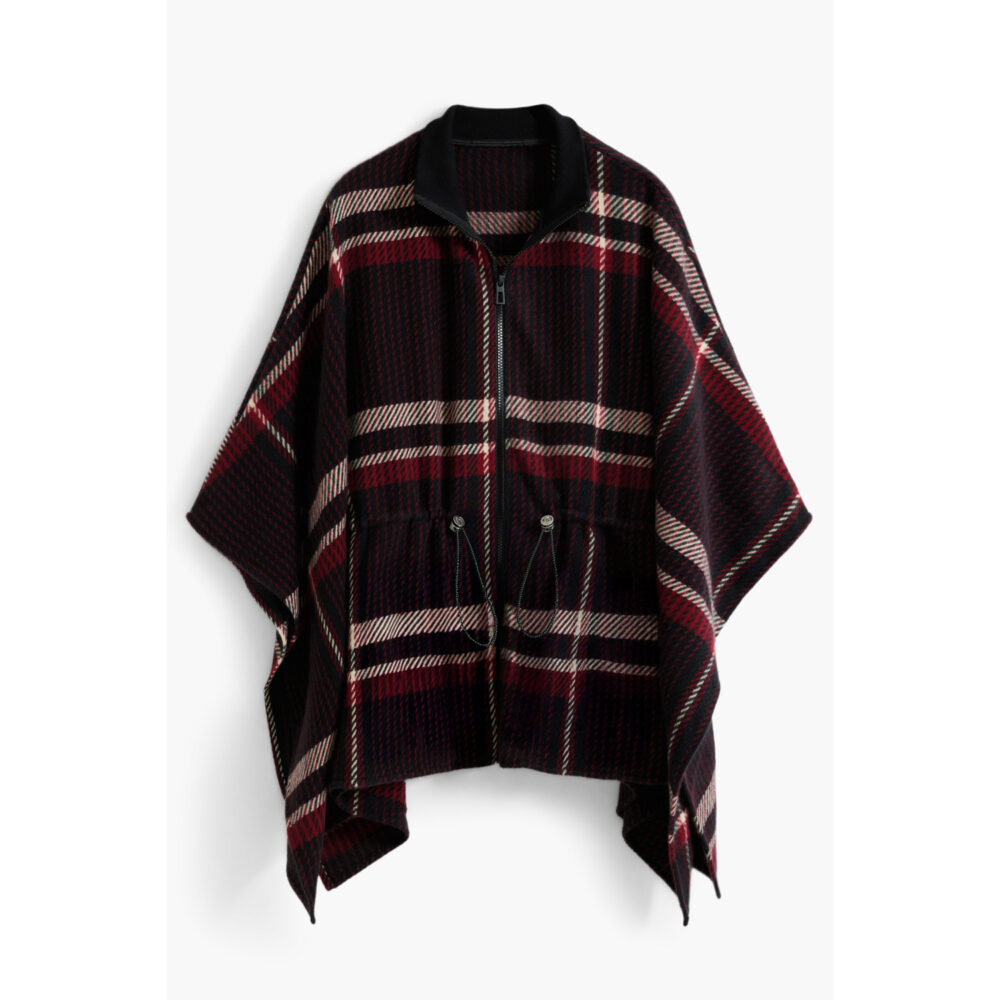 Poncho em xadrez Aldama, com pormenores em contraste, fecho de correr, cordão ajustável e logótipo discreto.