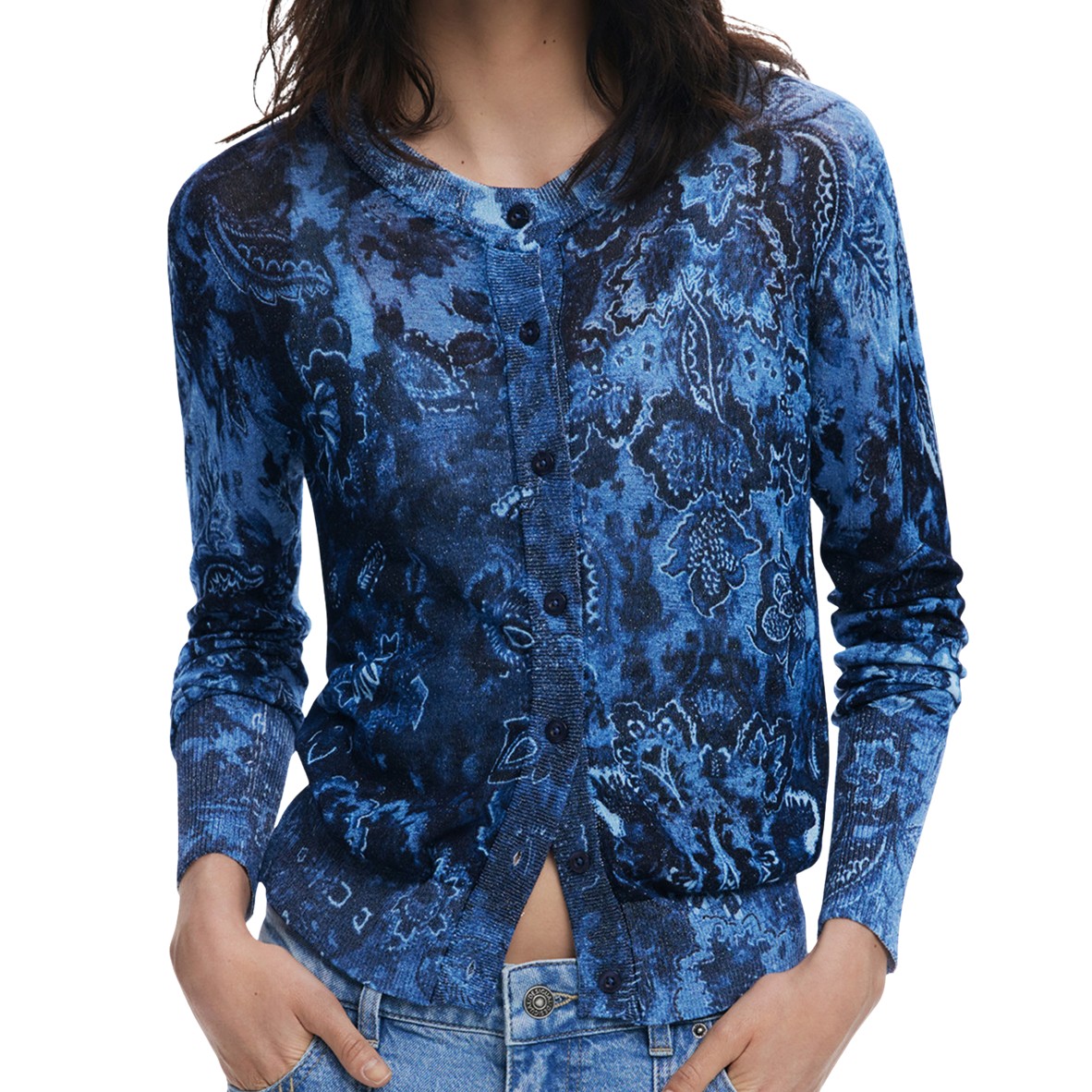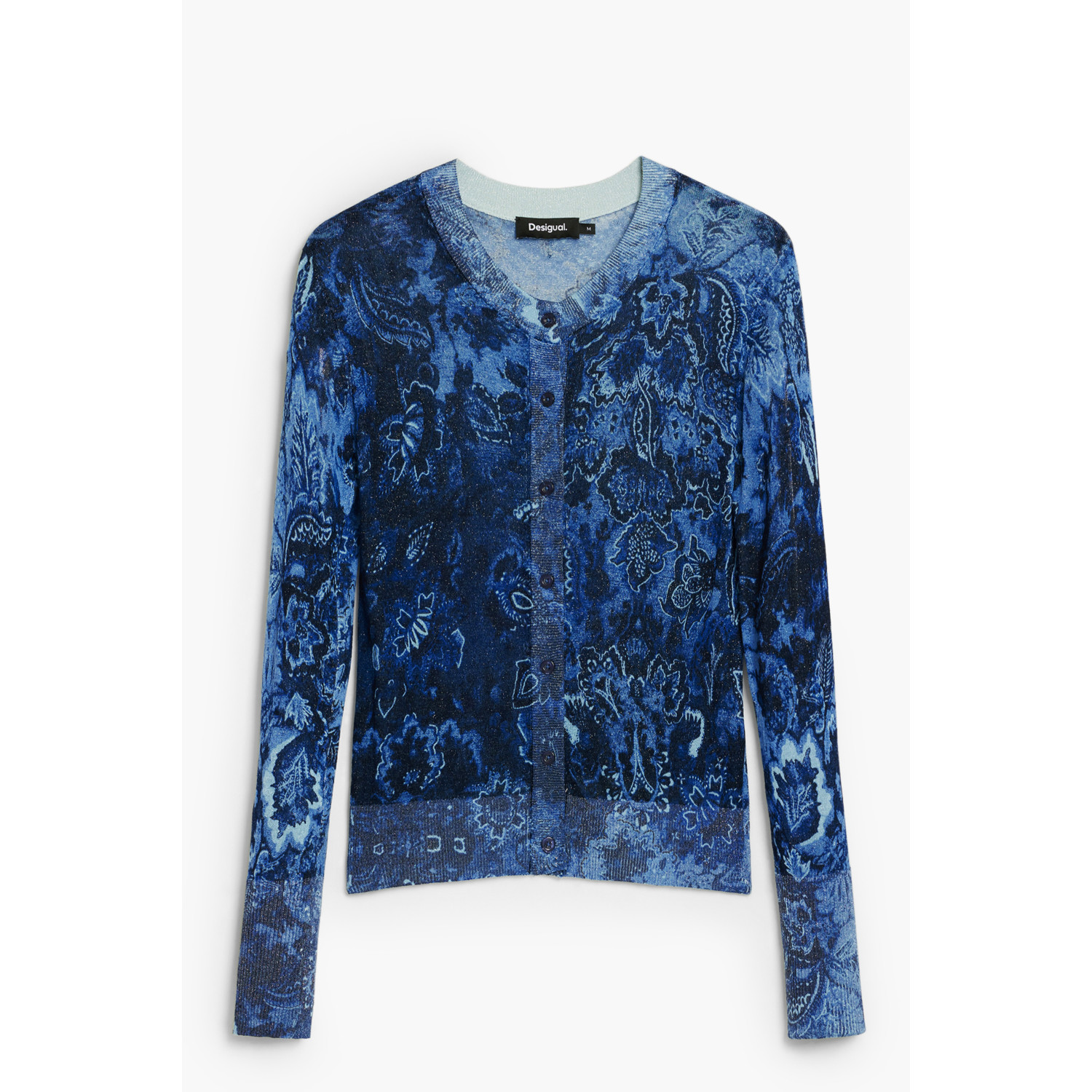 Casaco de manga comprida, gola redonda, botões, pormenores em contraste e logótipo.