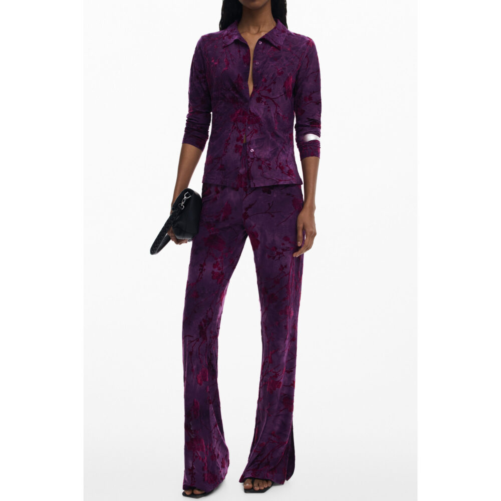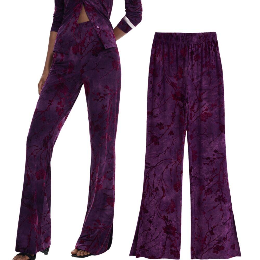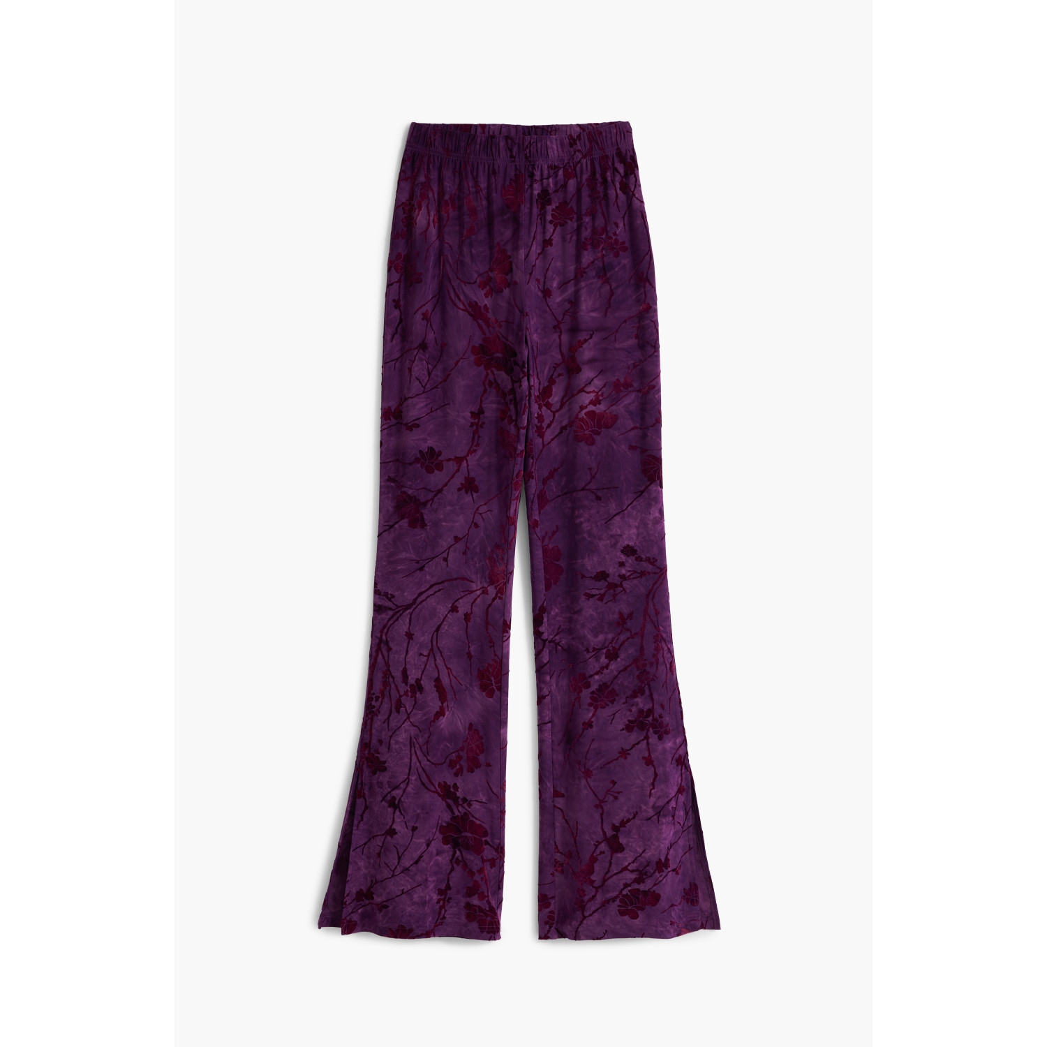 Calças de cintura elástica, perna larga com fenda, pormenores em contraste e logótipo.