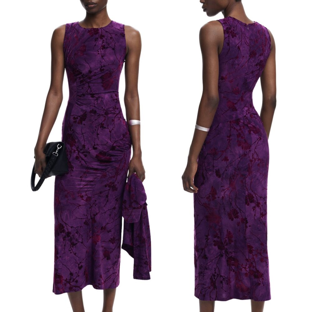 Vestido comprido sem mangas, gola redonda, fecho de correr nas costas, pormenores em contraste e logótipo.