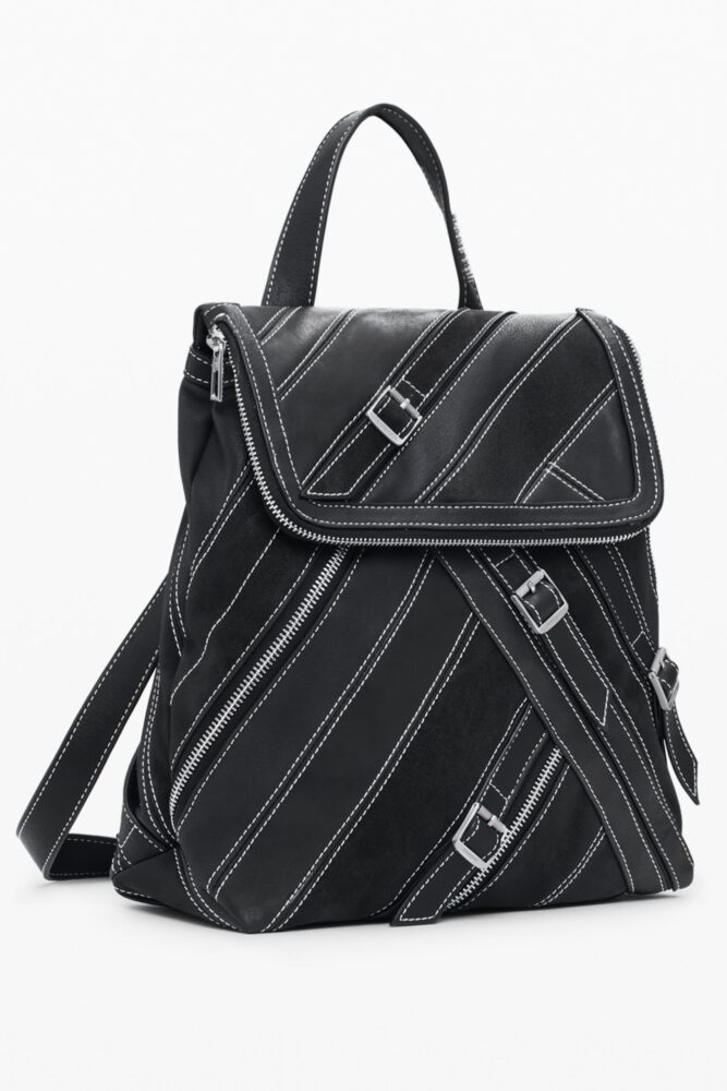 Mochila com 1 alça, alças de ombro ajustáveis, 2 bolsos exteriores, 2 compartimentos, 1 bolso central, 1 bolso interior, pormenores em contraste, fecho de correr e íman, logótipo