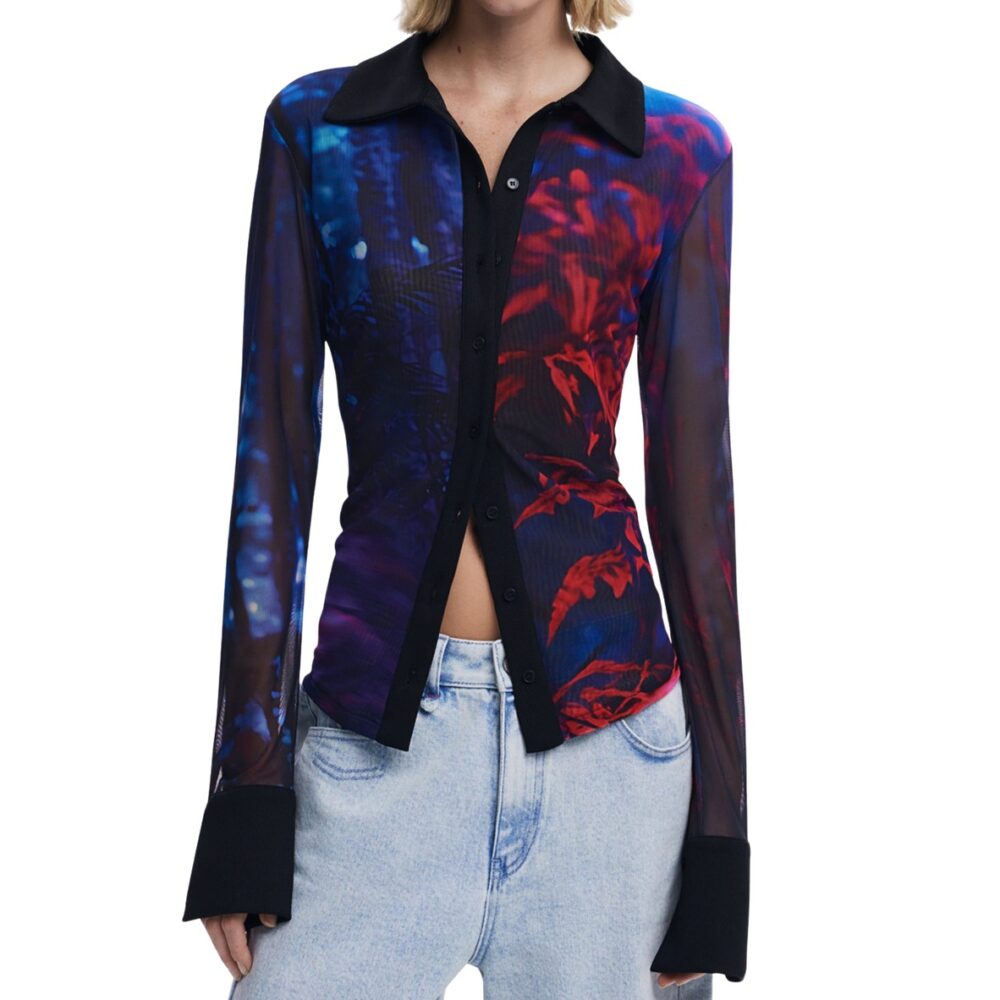 Camisa de manga comprida com padrão, modelo DIETRICH, com gola italiana, punhos com 1 botão, fecho frontal com botões, pormenores contrastantes e logótipo da marca.