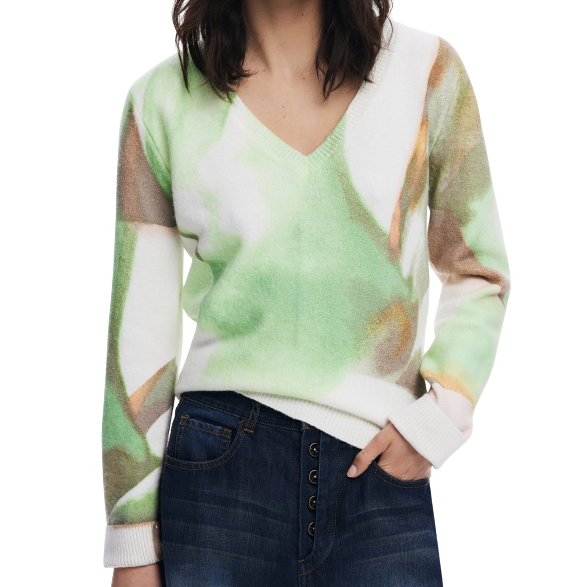 Camisola de manga comprida com padrão, modelo OULU, com decote em V e logótipo da marca.