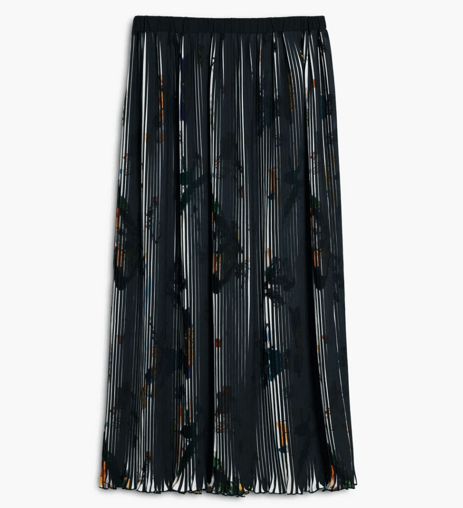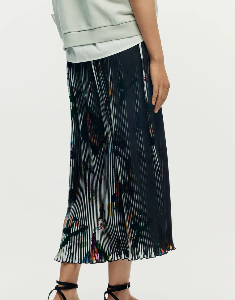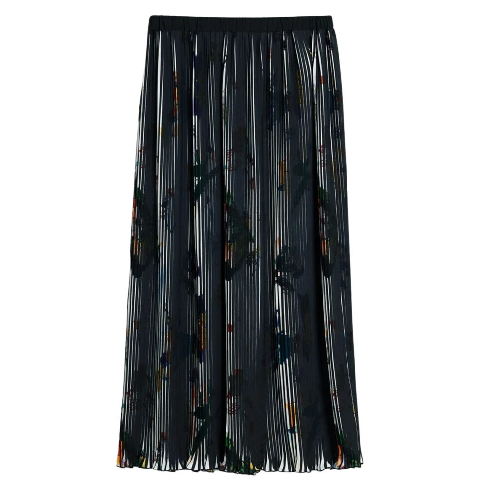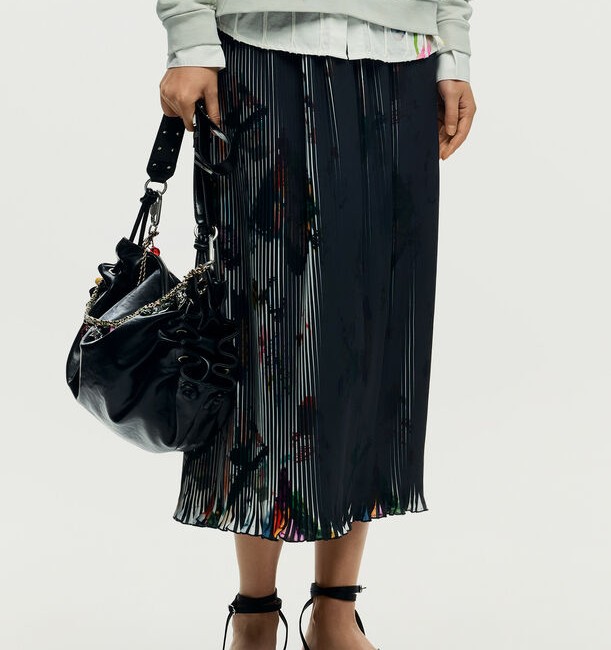 Gonna longa elegante e fluida, ideal para criar looks sofisticados e modernos.