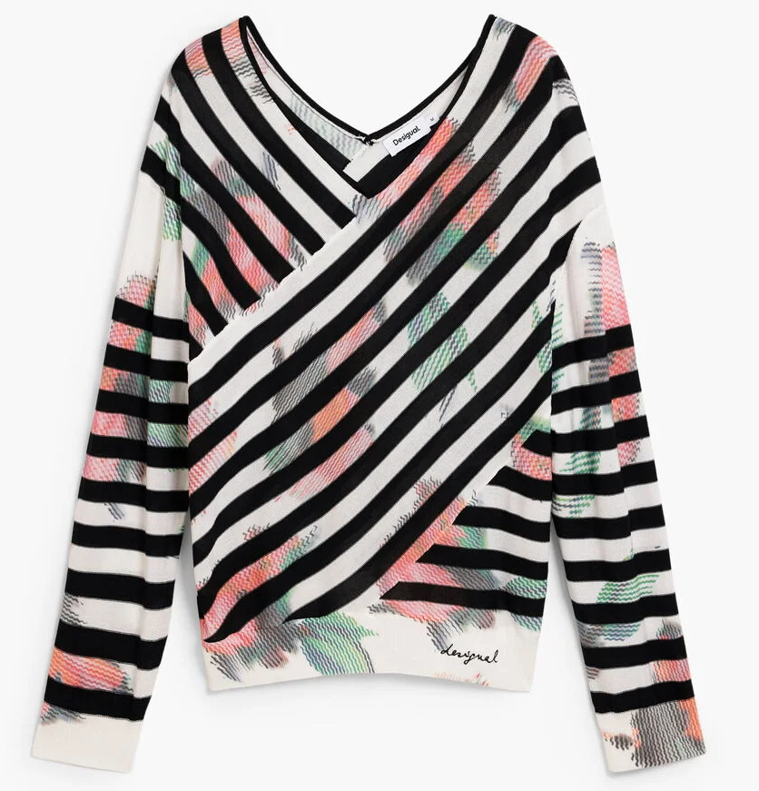 Apresenta padrão decorativo que valoriza o visual da peça e decote em V, proporcionando um caimento feminino e moderno.