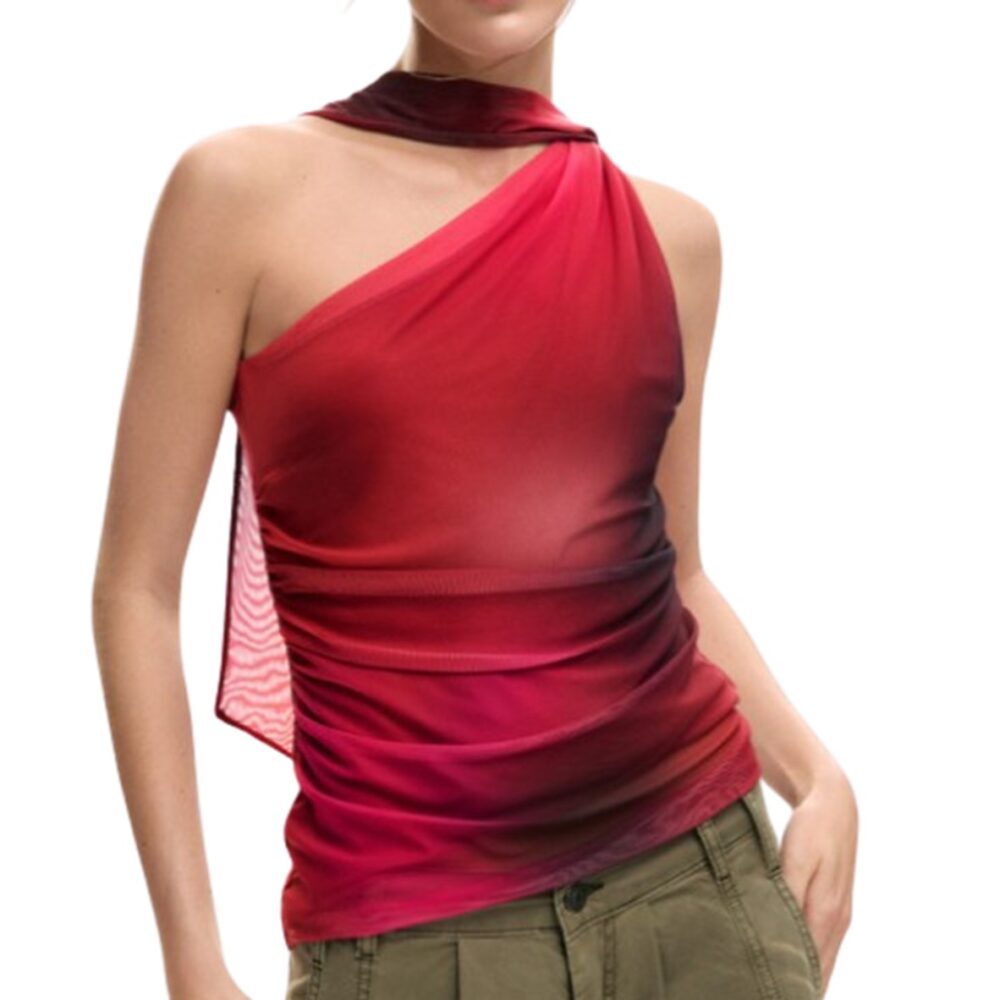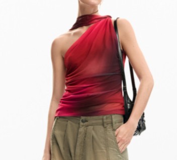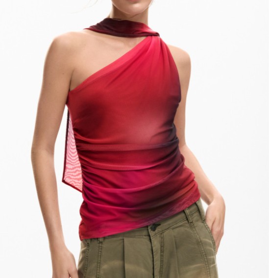 Apresenta design de um ombro só e pormenores em contraste, que acrescentam estilo e personalidade à peça.