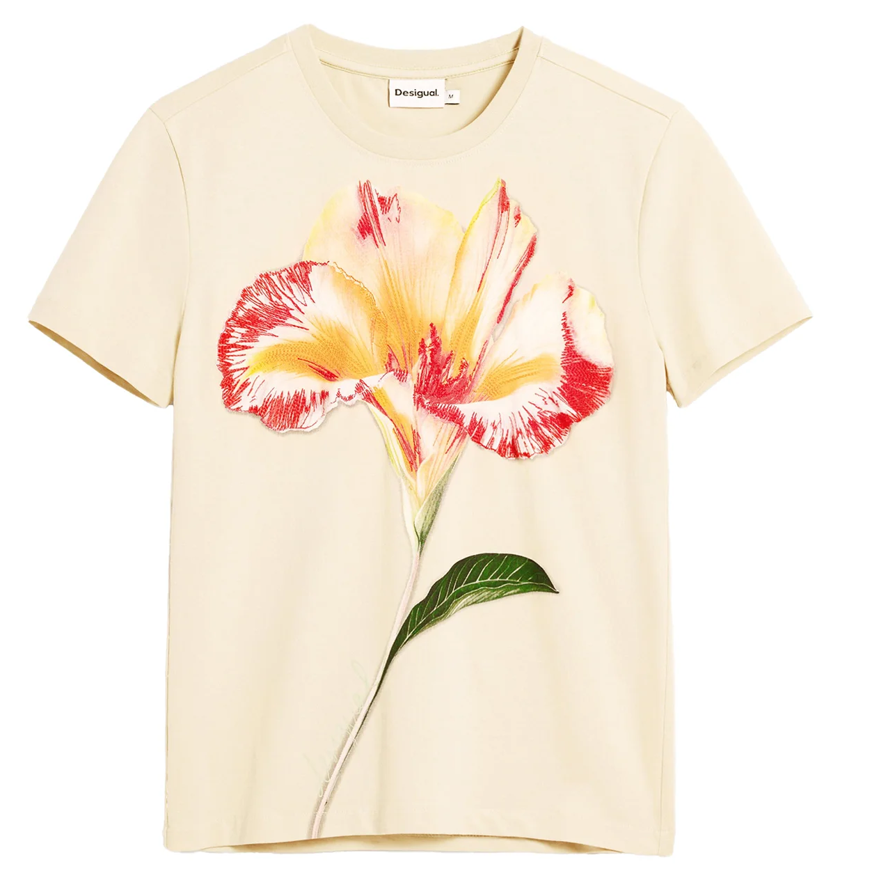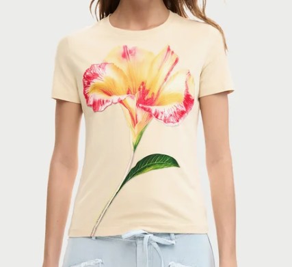 Apresenta gola redonda, estampa, bordado e logótipo discreto, conferindo um detalhe elegante ao visual.