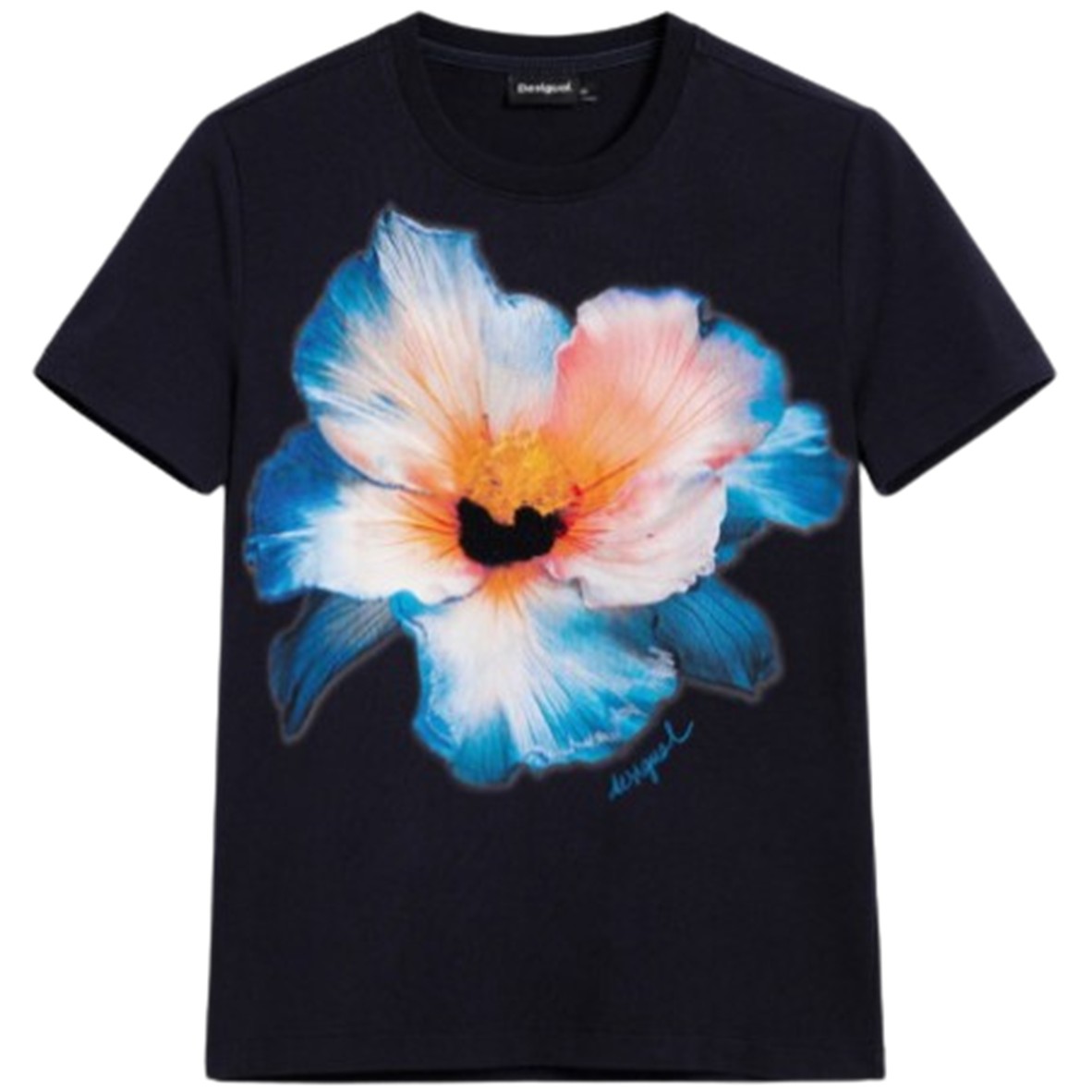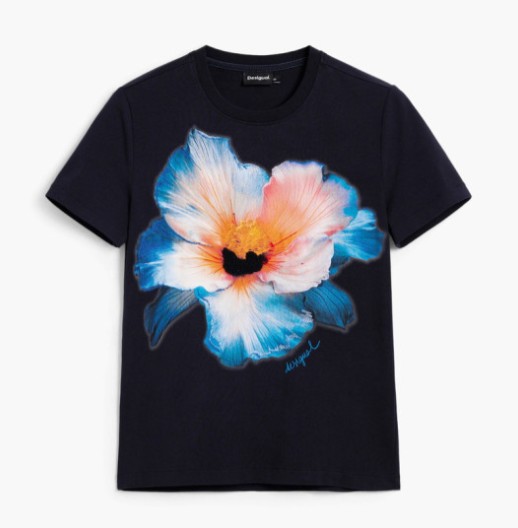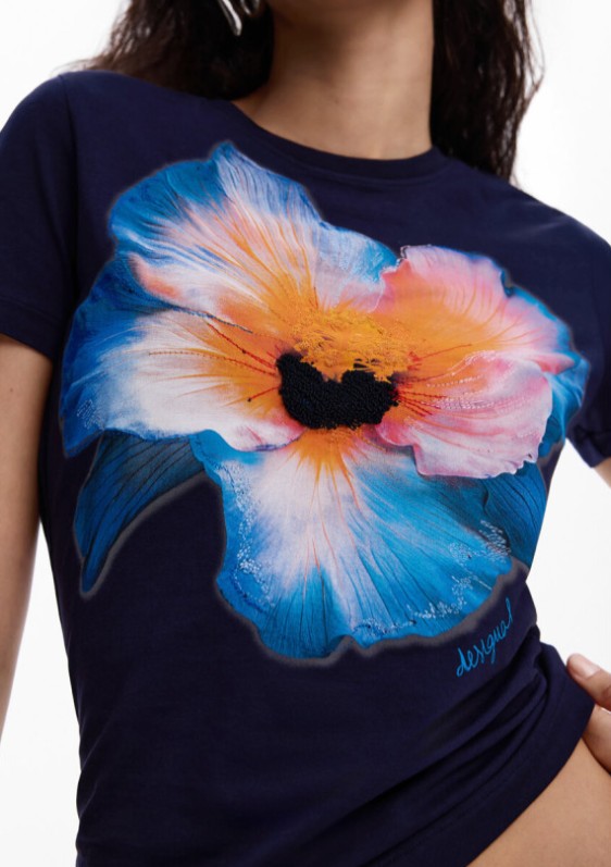 Apresenta gola redonda, estampa, bordado e logótipo discreto, conferindo um detalhe elegante ao visual.